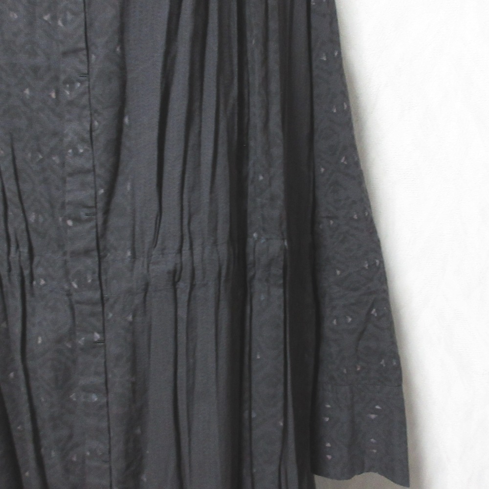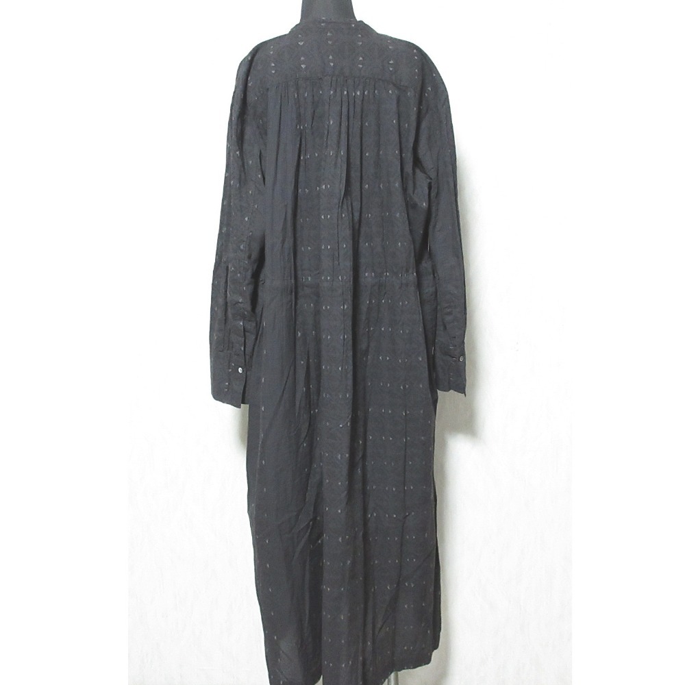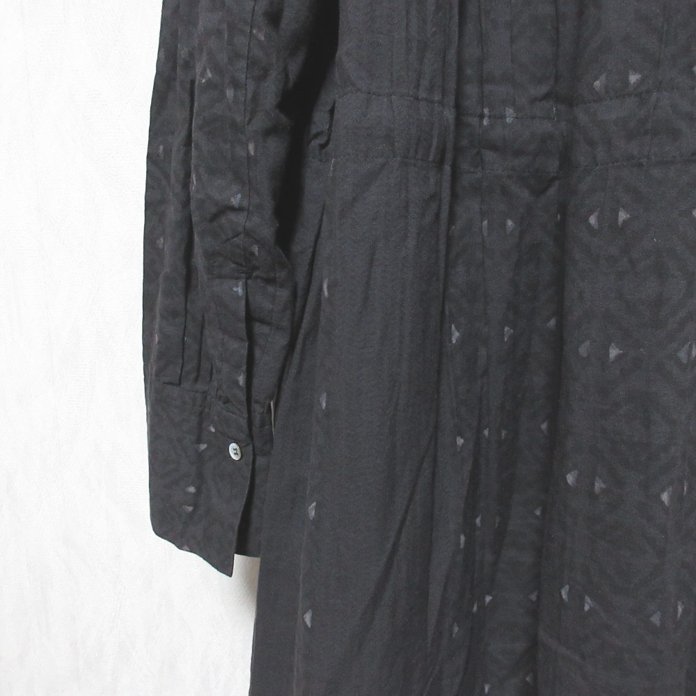美品 pas de calais パドカレ パネルストライプ ブロックプリントワンピース 長袖 ロングシャツ 4499 36 チャコールグレー