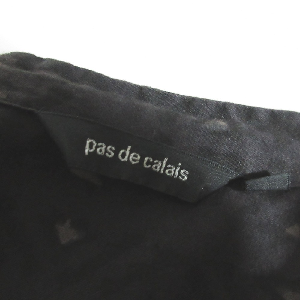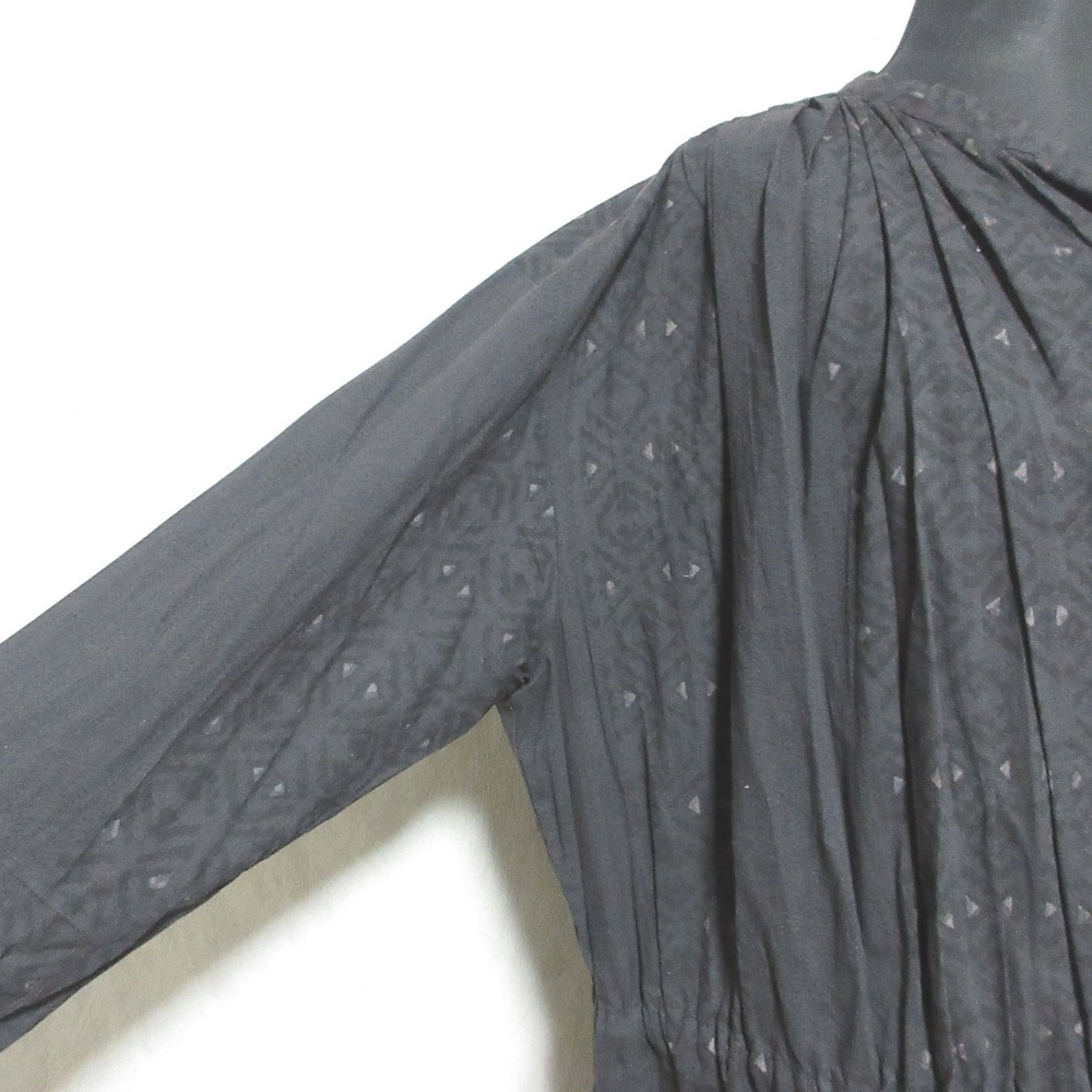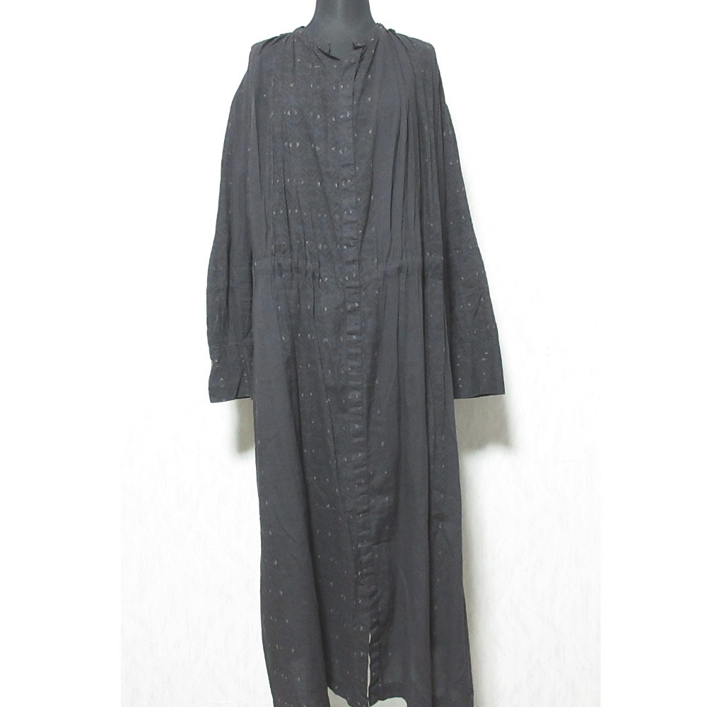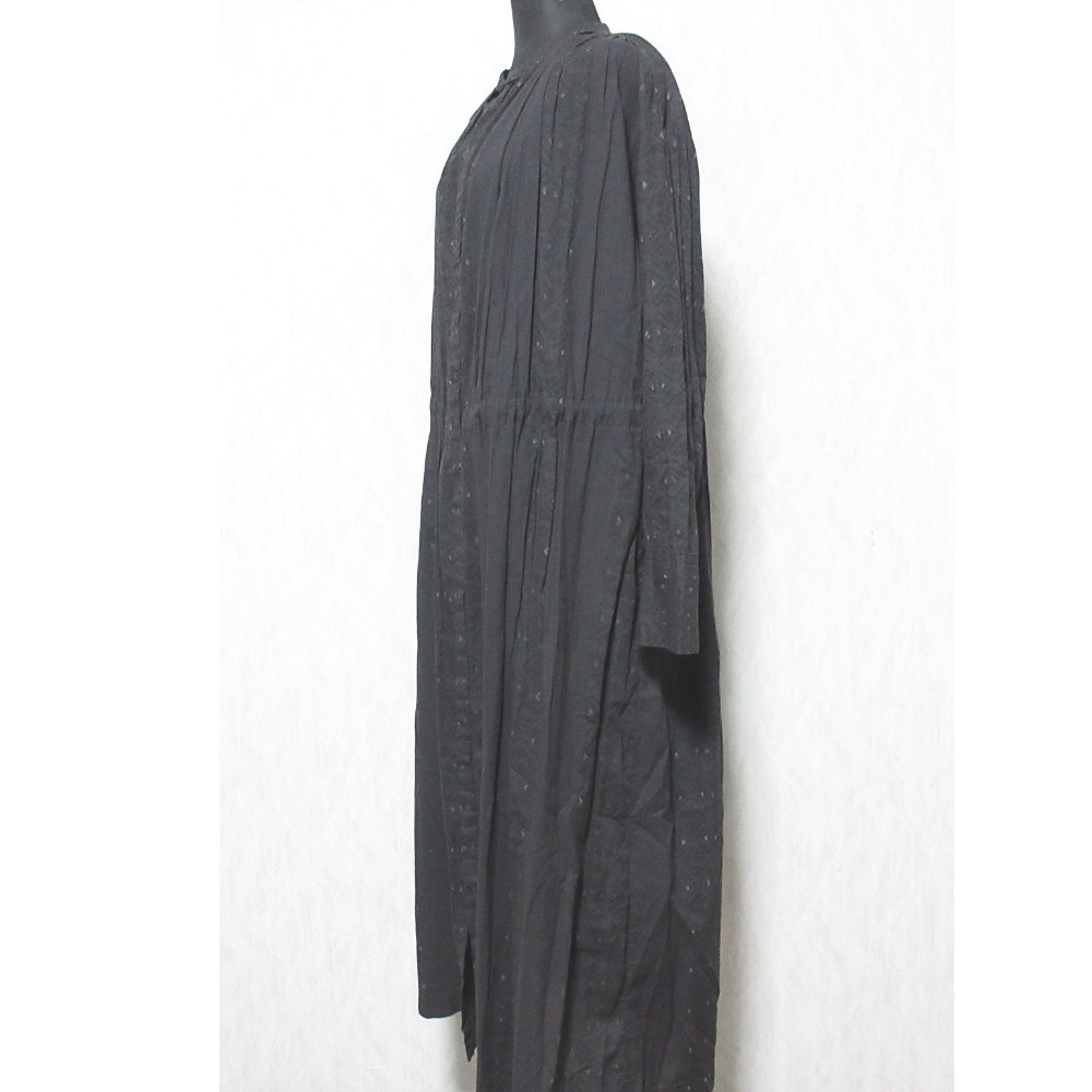 美品 pas de calais パドカレ パネルストライプ ブロックプリントワンピース 長袖 ロングシャツ 4499 36 チャコールグレー