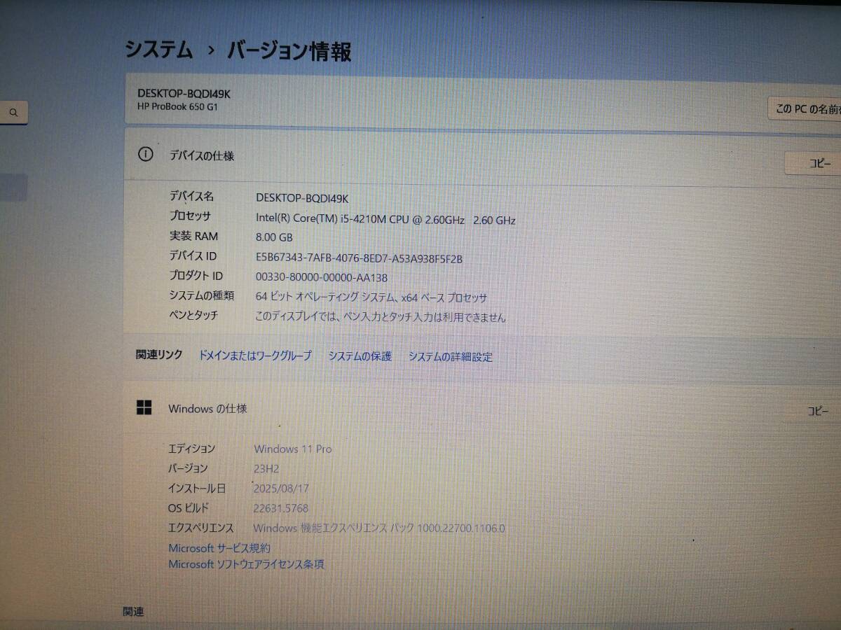 | 商品説明 | 製品名:Probook 650 G1 CPU:core i5-4210M (2.60GHz) メモリ:8GB ドライブ:DVDマルチ COAシール:Windows Pro 液晶サイズ:15.6ワイド グレア 解像度 1920×1080 フルHD ストレージ:HDD500GB LAN:無線対応 Webカメラ:あり OS:Windows11Pro 64bit office:MSoffice Pro+2019 付属品:ACアダプター |