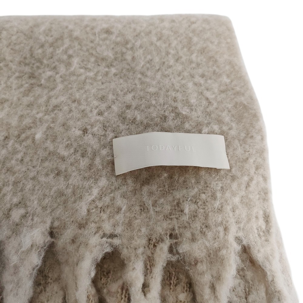 美品 TODAYFUL トゥデイフル ボリュームニットマフラー フリンジ 大判 ストール ベージュ