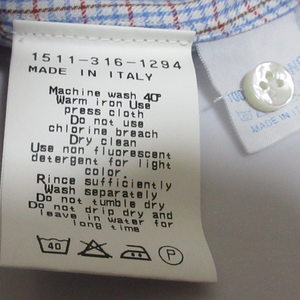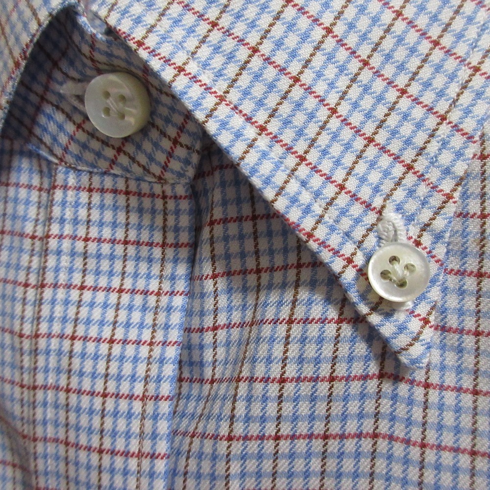 商品名:クリーニング済み LUIGI BORRELLI ルイジボレッリ チェック柄 長袖 ボタンダウン BDシャツ サイズ42 マルチカラー