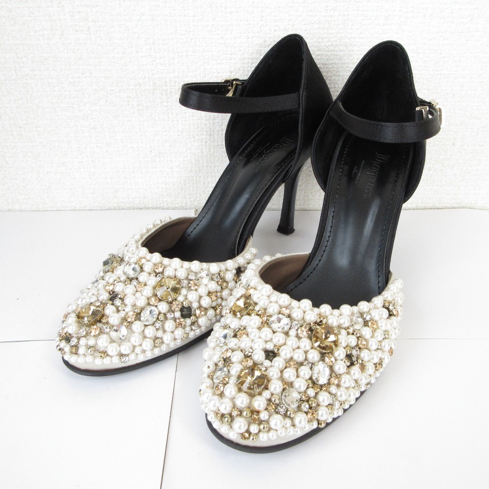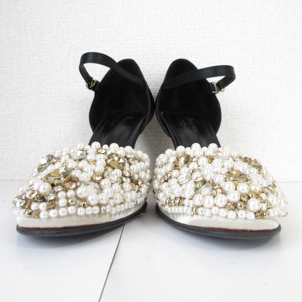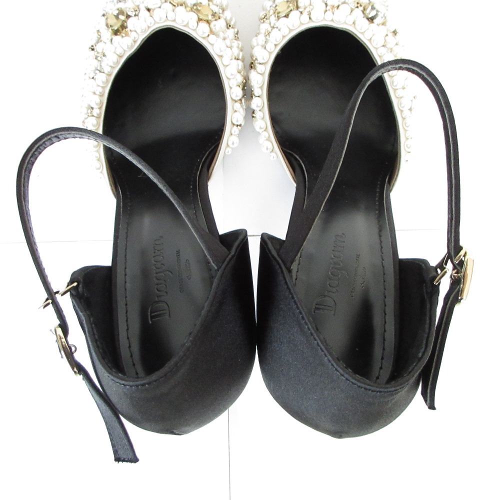 美品 Diagram ダイアグラム グレースコンチネンタル ビジュー刺 ワンストラップ セパレート パンプス 39 24.5cm相当 ブラック系