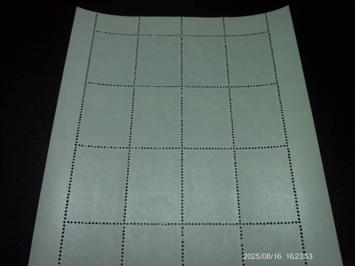 ワレ状の糊シワが有りますが用紙と糊の不調和が生じた物で仕方ないものです。