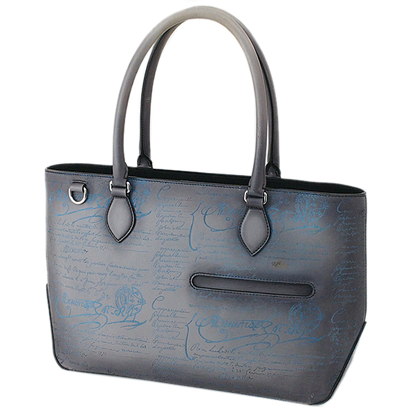 富士屋◆ ベルルッティ BERLUTI パティーヌ トゥジュール スクリット カリグラフィ グレー×ターコイズ トートバッグ