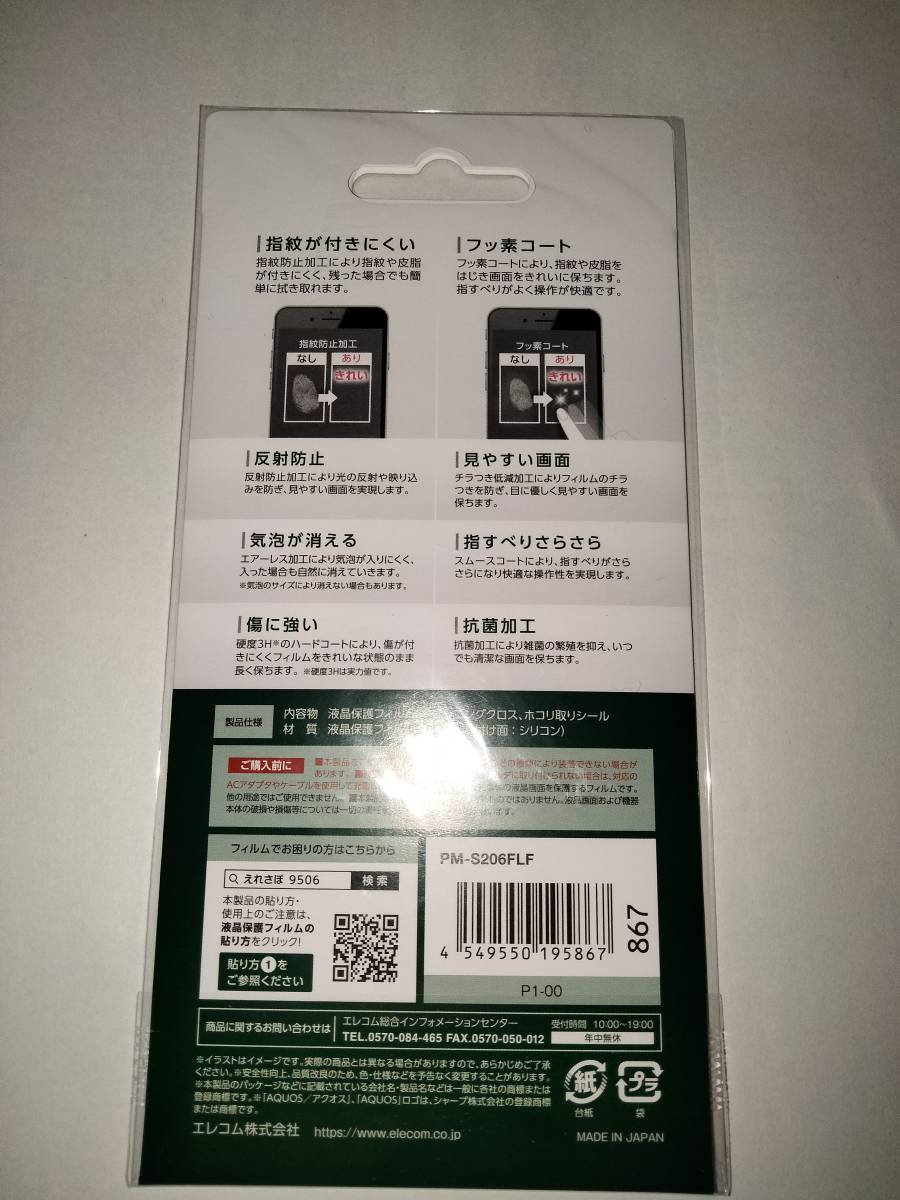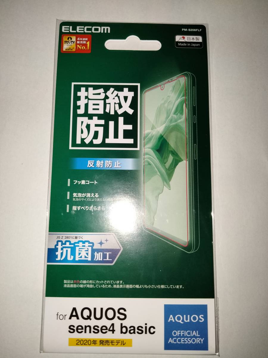 日本製 ELECOM AQUOS sense4 basic フィルム/防指紋/反射防止 抗菌加工により雑菌の繁殖を抑え フッ素加工により水を弾き汚れもつきにくく