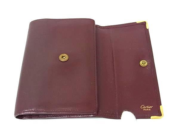 Cartier カルティエ マストライン レザー 三つ折り がま口 財布 札入れ 小銭入れ ウォレット レディース メンズ ボルドー系 DJ1145