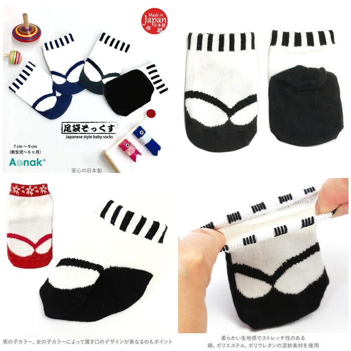 商品説明 | ・Aenak(アエナック)より足袋ソックス(7cm-9cm)が発売。 ・足袋と草履を履いてるような、和風デザインがかわいらしいベビーソックス。 ・男の子カラー、女の子カラーによって履き口のデザインが異なるのがポイント。 ・柔らかい生地感でストレッチ性のある綿、ポリエステル、ポリウレタンの混紡素材を使用。安心の日本製。 ・お正月、ひな祭り、端午の節句などお祝い事での衣装用ソックスとしておすすめ。 |