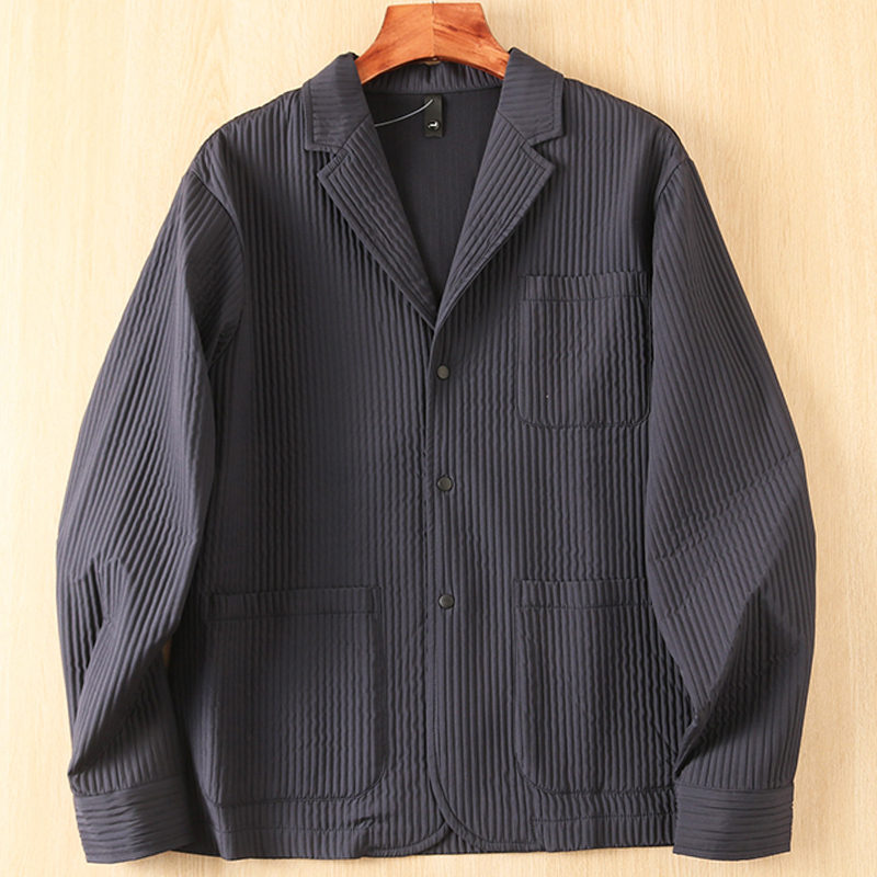 Y6258-L ネイビー 新品 テクスチャー テーラードジャケット 軽量 通気 サマー 春夏 ビジネス ブレザー プリーツ加工 メンズ カジュアル