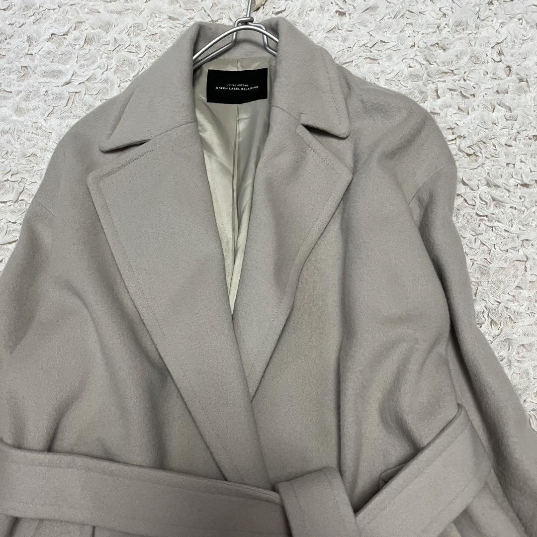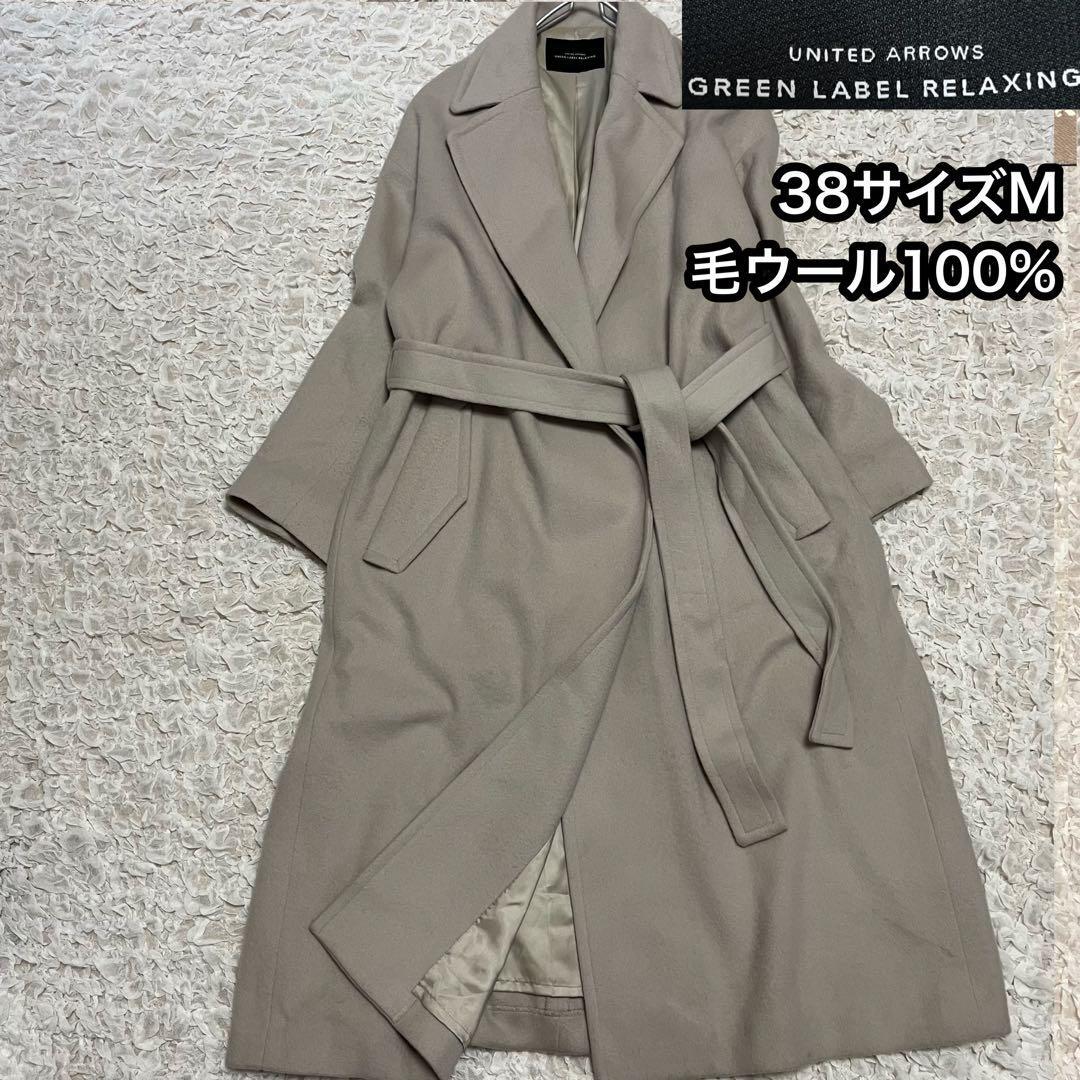 ■レディース UNITED ARROWS- モデル名: GREEN LABEL RELAXING- サイズ: 38サイズM- 素材: 毛ウール100%- 色: ベージュ- デザイン: ロングコート、ベルト付き