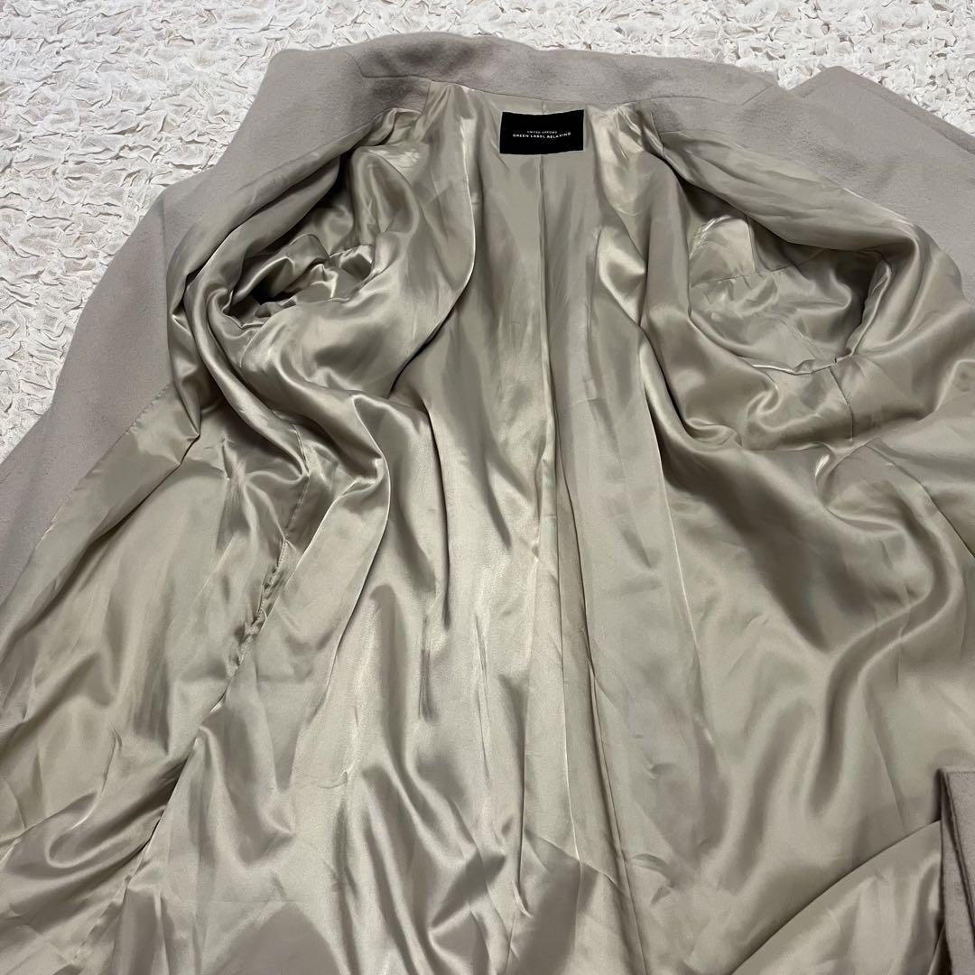 ■説明: green label relaxingが提案するきれいめデザインコート◆今シーズン新しく登場したデザインコートシリーズのご紹介。長めの丈感×たっぷりとしたシルエットが今年らしいベルテッドデザインです。毛並みのきれいなシングルビーバー素材を使用。ウール100%の混率にこだわりました。ふっくらとあたたかな着心地がポイントのいちおし素材です。大きめの衿やバックのタックデザインがポイント♪同素材のベルトをラフに結んだ着こなしはもちろん、羽織っての着用も様になります。大人きれいめスタイルにおすすめの一着です。