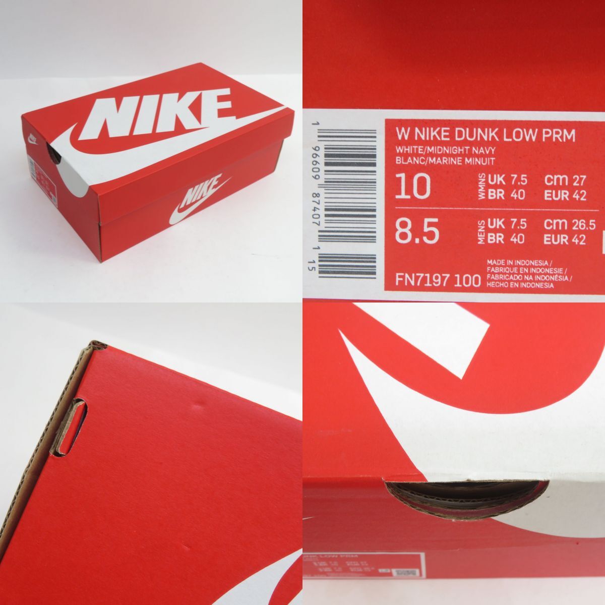 153s【未使用】NIKE WMNS DUNK LOW PRM ナイキ ウィメンズ ダンク ロー FN7197-100 US10 27cm 箱有 □付属品:外箱、タグ ※画像にあるもので全てです。 □型番:FN7197-100 □サイズ:27cm □状態:未使用 ・タグ付きで使用された形跡が見られない為、未使用と判断しています。 ・試し履きのようなシワ、スレ、キズが少し見受けられます。 ※保管による初期傷・汚れなどある場合が御座います。 未使用品ではありますが、二次流通品の新古品になります為、 完品をお求めの方はご購入をご遠慮くださいますようお願い致します。 ・外箱には保管に伴うスレ、汚れ、キズ、ヘコミ等傷みが見受けられます。 ※モニターの環境により実物と画像の色が違うように見える場合があります。 |