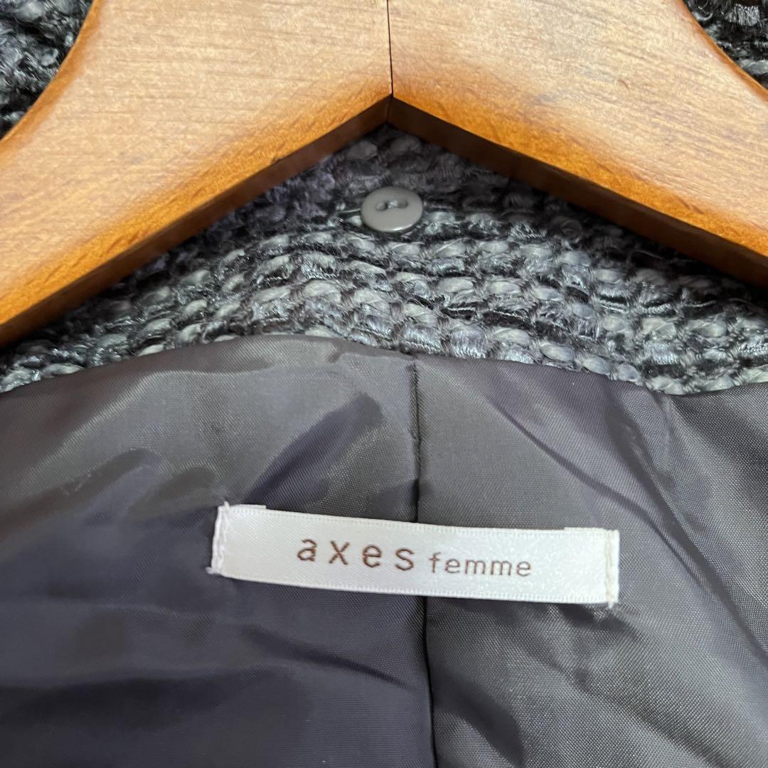 ■アイテム: 美品3way【アクシーズファム】襟.袖.脱着可能ツイードコート*Mサイズ*グレー