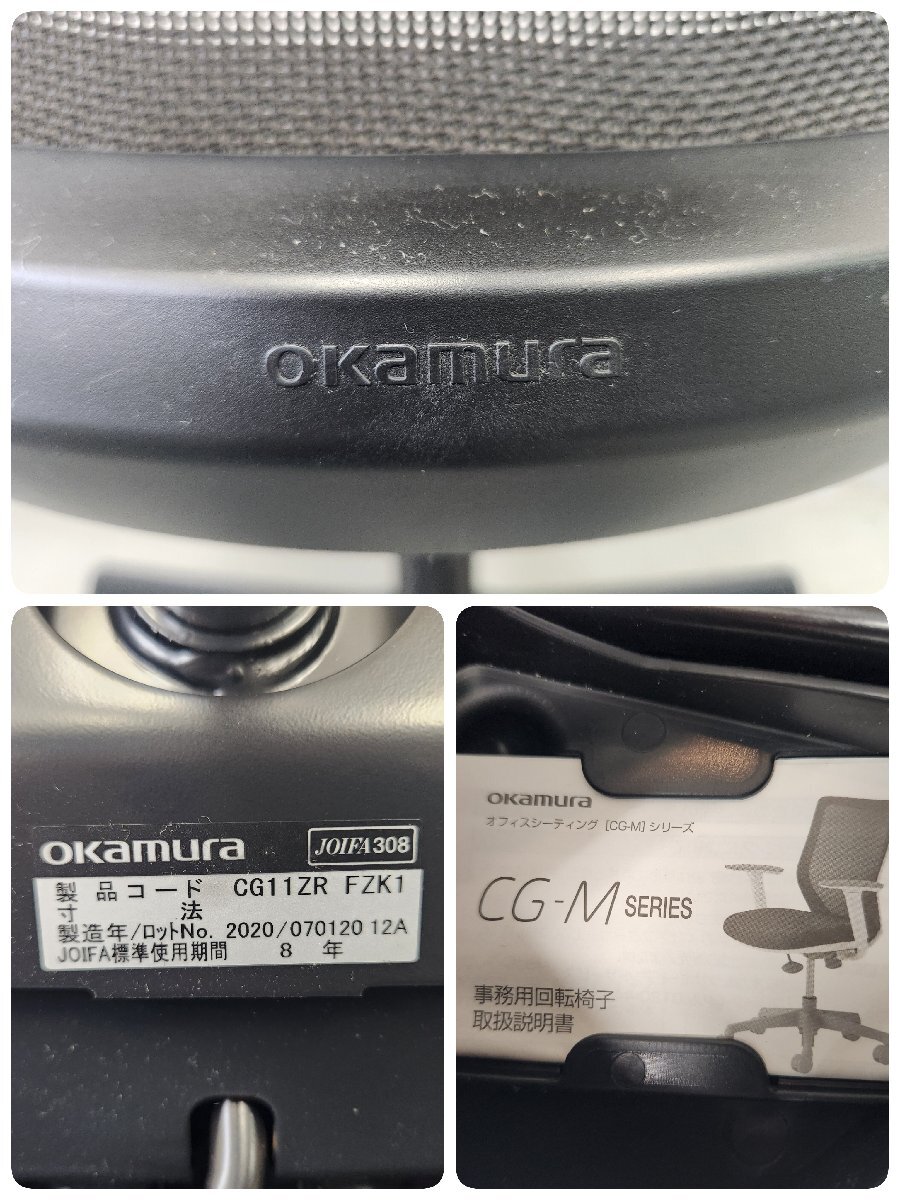 okamura オカムラ CG-M CG11ZR FZK1 オフィスチェア 事務椅子 肘無し アームレス メッシュ キャスター付き ブラック B