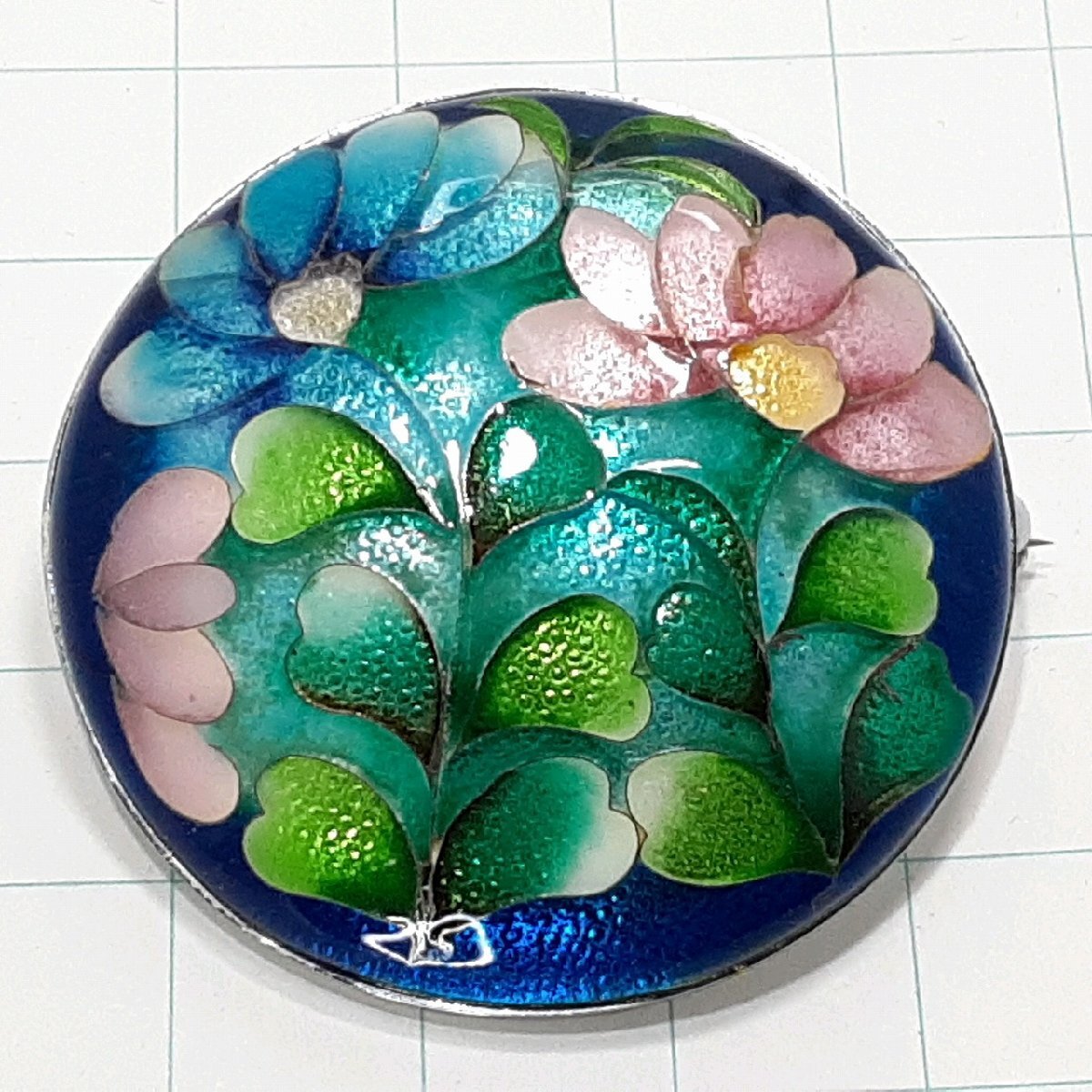 送料無料)ビンテージ☆七宝焼き フラワーデザイン☆アンティーク ブローチ A31391
