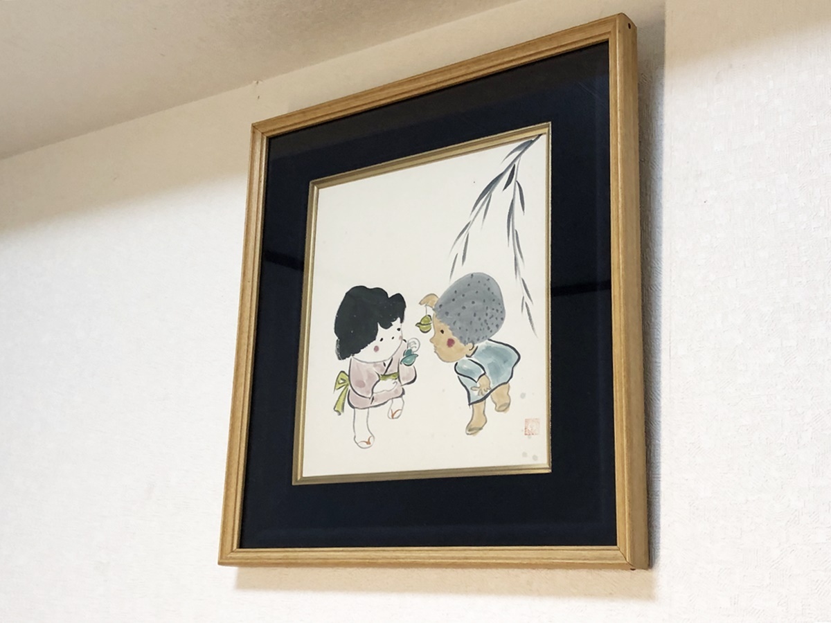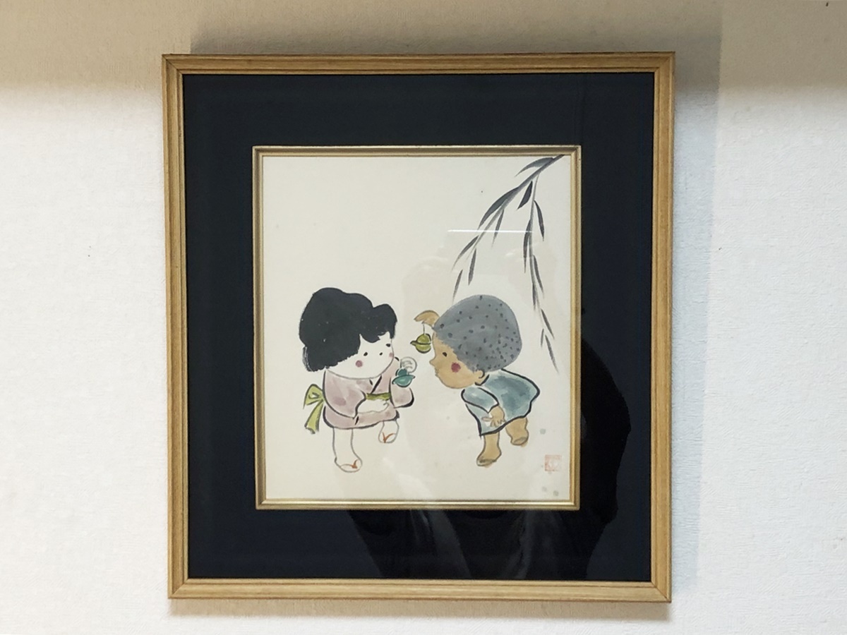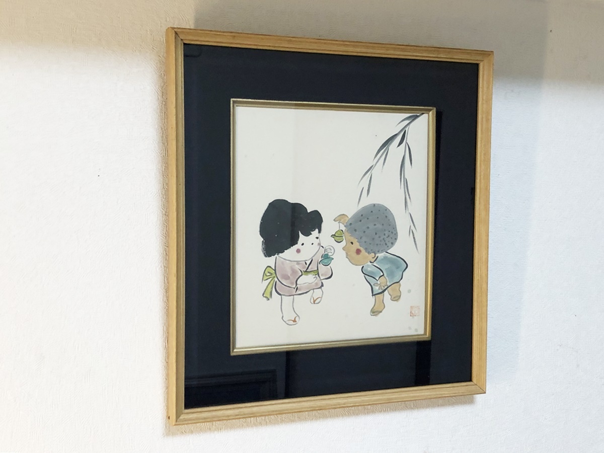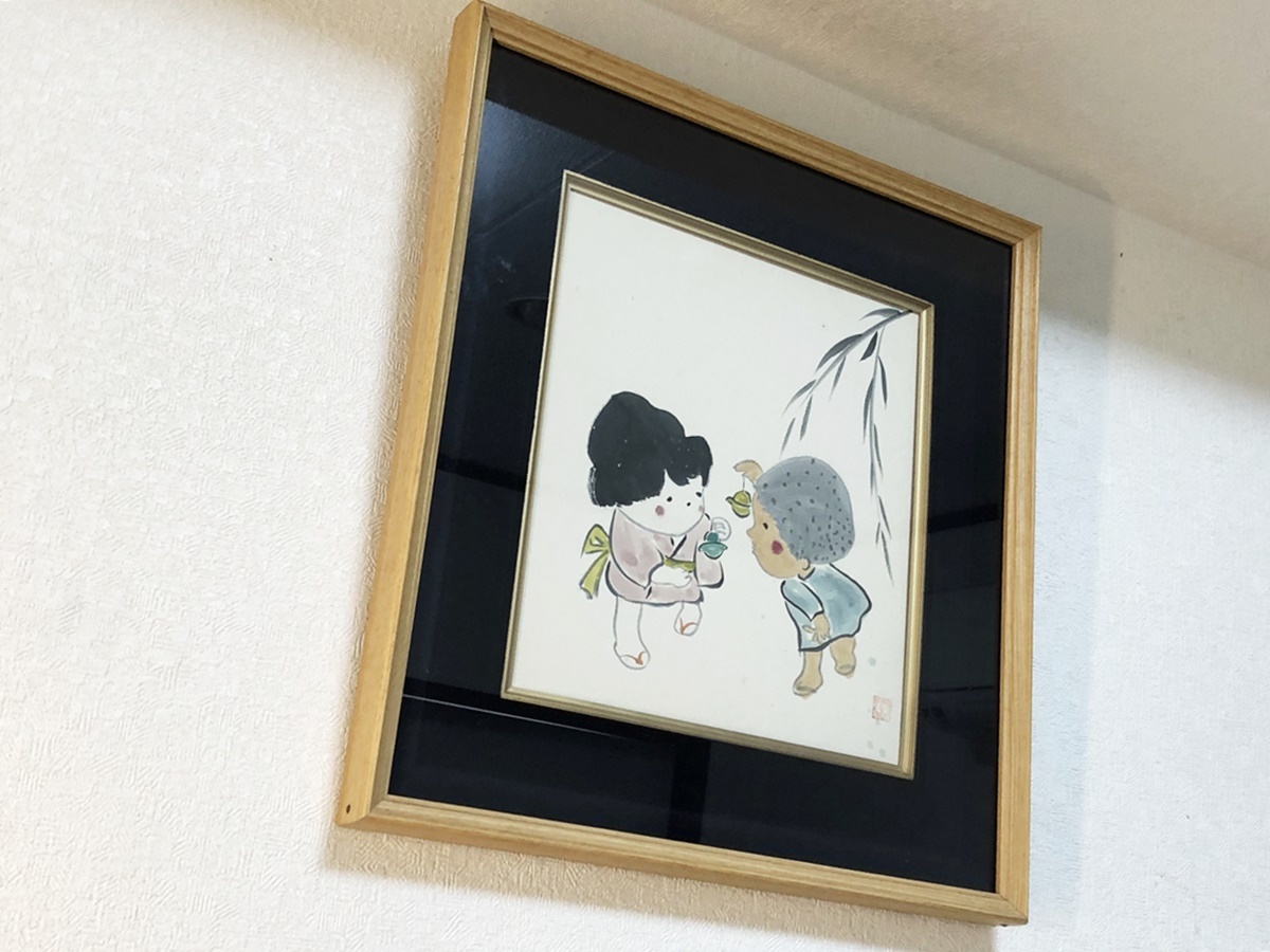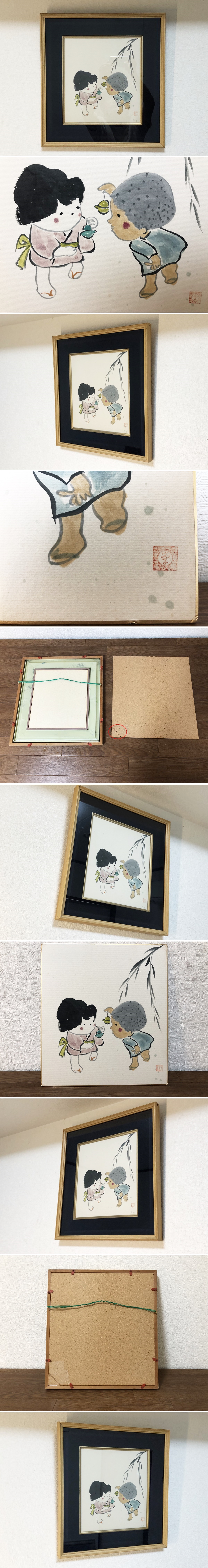 二人の童 色紙アート光子作 壁アート 和室・リビングルーム装飾 額付き日本画【商品詳細】 ■額サイズ:幅380×高さ410×厚み30mm ■硝子サイズ:350×380mm ■作品サイズ:235×260mm ※採寸は目安程度でお考え頂き多少の誤差は了承下さい。 ■日本画二人の童、かわいらしいイラストです。 ■やわらかな色使い、日本の伝統的な絵柄や雰囲気を表現している作品。 ■真作かも知れませんが真贋の判断ができない場合は全て模写と表記させて頂きます。 ■古い作品、所定の鑑定機関のない作品などが対象となります。 ■落款に光子と捺印されてますが作者は判りません、わかる方のみご検討下さい。 ■和室、客室、リビングルーム、ダイニングルーム、廊下、寝室など壁の装飾に最適です。 ■額縁に小傷・裏面割れが御座います、額はおまけ程度でお考え下さい。 ■掲載している物が全てです画像にて判断下さい。 ■他気になる事など御座いましたらお気軽に質問下さい。 (注意) 環境、モニター画面等により色合いが異なります。 【商品管理番号】073 |