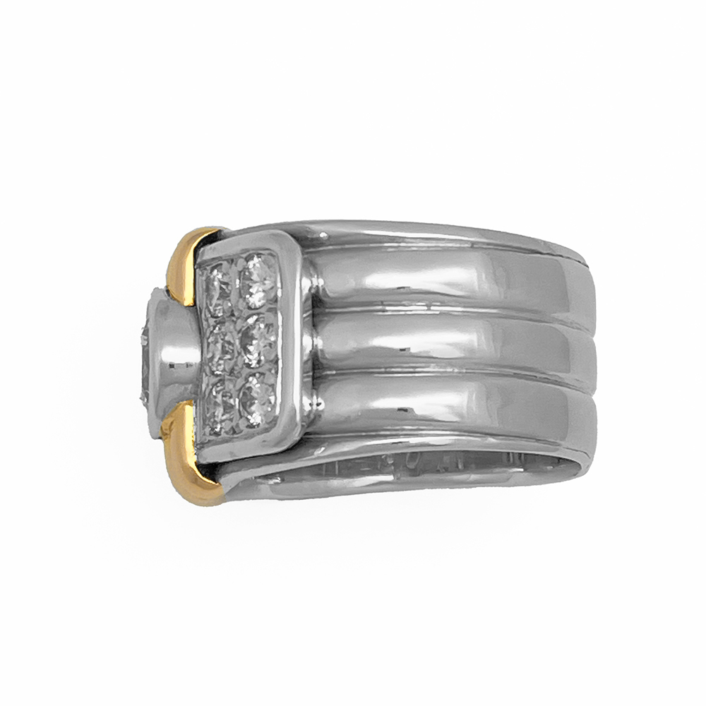 商品名 | K18/Pt900 25.80g ダイヤモンド 1.061ct 脇ダイヤ 1.08ct コンビ メンズ リング | ||