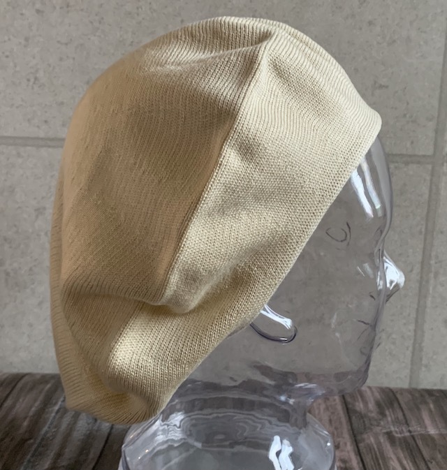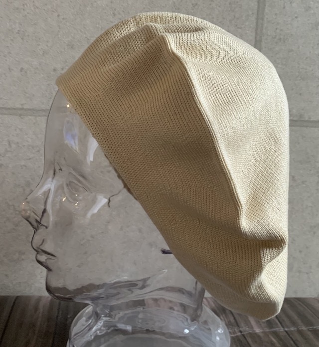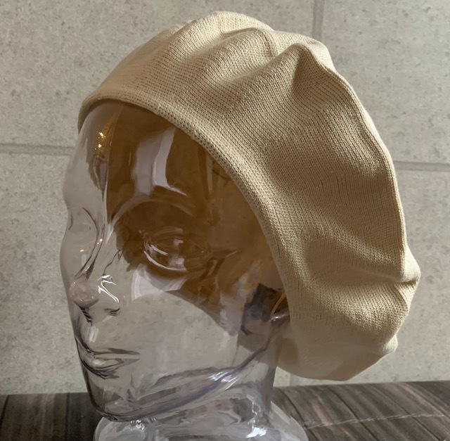 熟練の日本の職人が丁寧に仕上げました。よく聞かれるお悩みを解決するベレー1】ニットはチクチクするのが苦手2】締め付けが強すぎて、長時間かぶると頭が痛くなるこのようなお悩みも綿を50%配合し、日本の職人技術でふっくらと編み上げられたやさしい編地でストレスなし。何より感じていただきたい優しいフィット感。しっかり”伸び” ”縮み”するのに、長時間かぶっても疲れない。自慢の仕上がりです。【dralon-ドラロン-】『さらさら吸水速乾』と『さわやか防臭』どの季節でも蒸れずに快適素材感。ドイツで開発されたオールシーズン対応の機能素材です。ドラロンは特殊製法のアクリル素材で、高い吸水速乾性を発揮します。また天然系防菌防臭加工『ロンフレッシュ』によるデオドラント機能で、吸収した汗が原因で発生するニオイを抑えます。さわやかで快適な素材感を楽しんでいただけます。男女兼用● カラー:ナチュラル●サイズ:L・外径 : 約30cm ・内径 : 約15.5cm