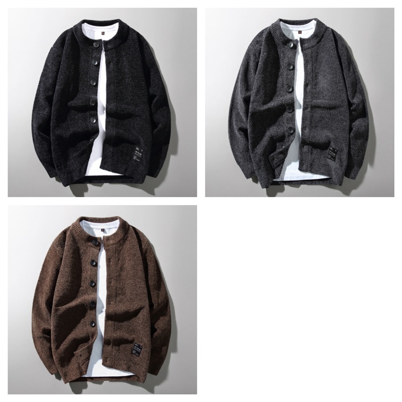 L5007-M ブラック/新品 メンズ ウール混 カーディガン 長袖 秋冬 厚手 柔らかい クラシック シンプル 着心地最高 おしゃれ アウター