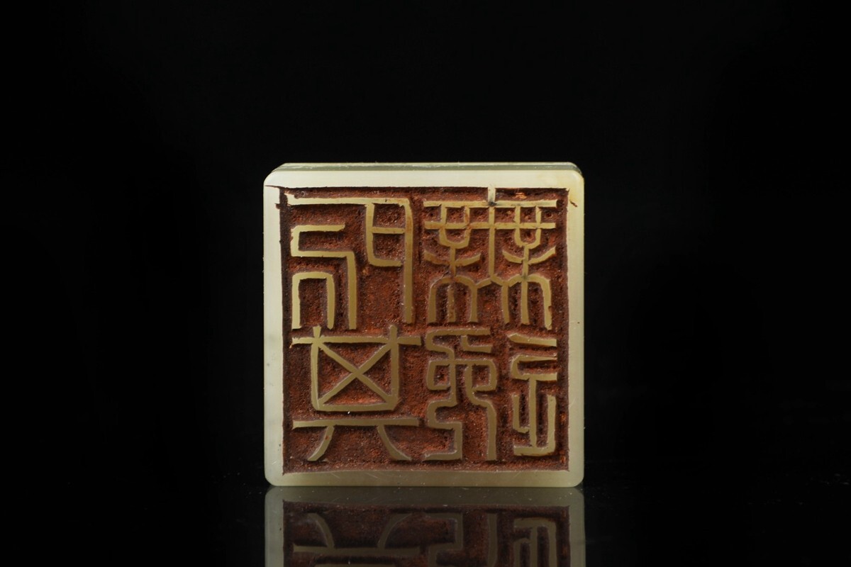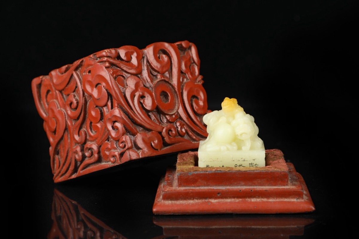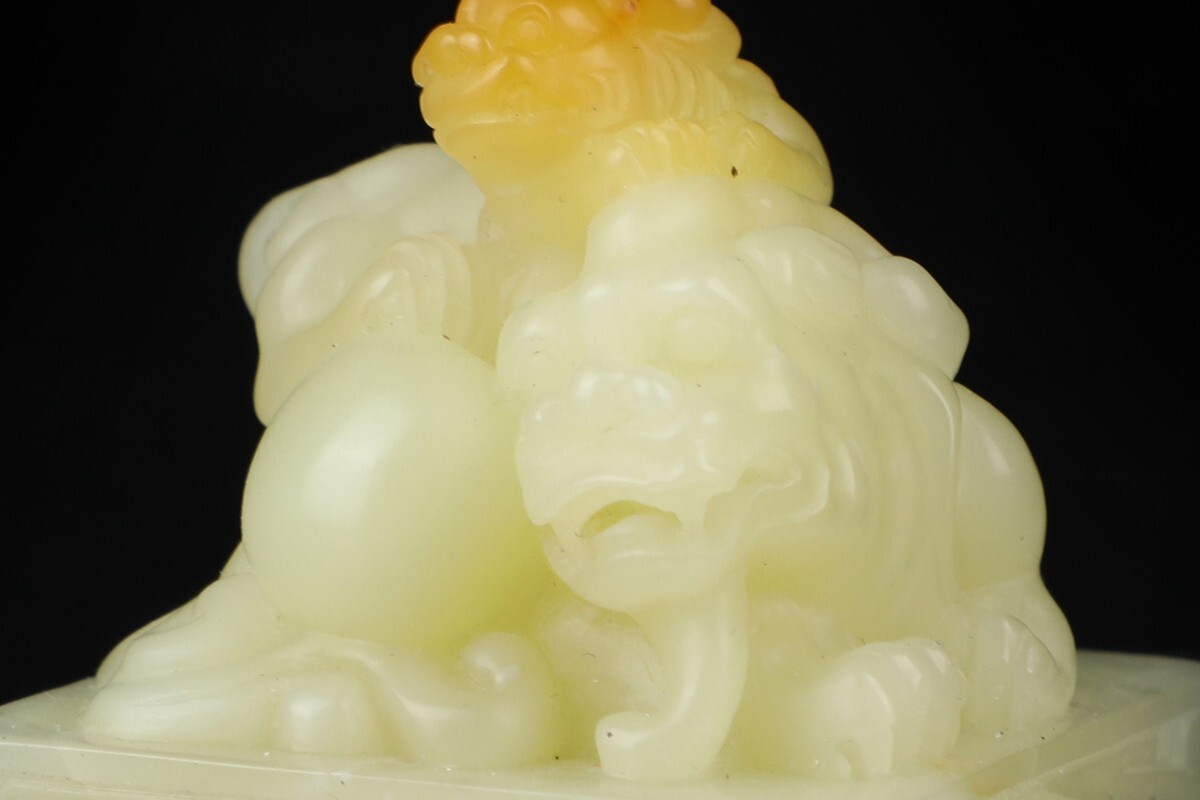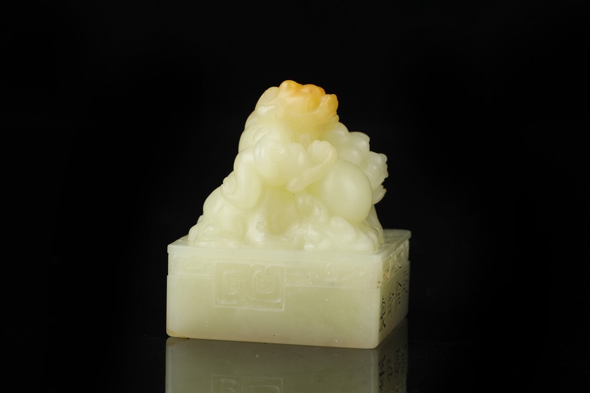 「清 乾隆御製 老寿山石 白田黄石彫り 事事如意鈕印章」極細工 擺件 古賞物 中国古美術 旧蔵出