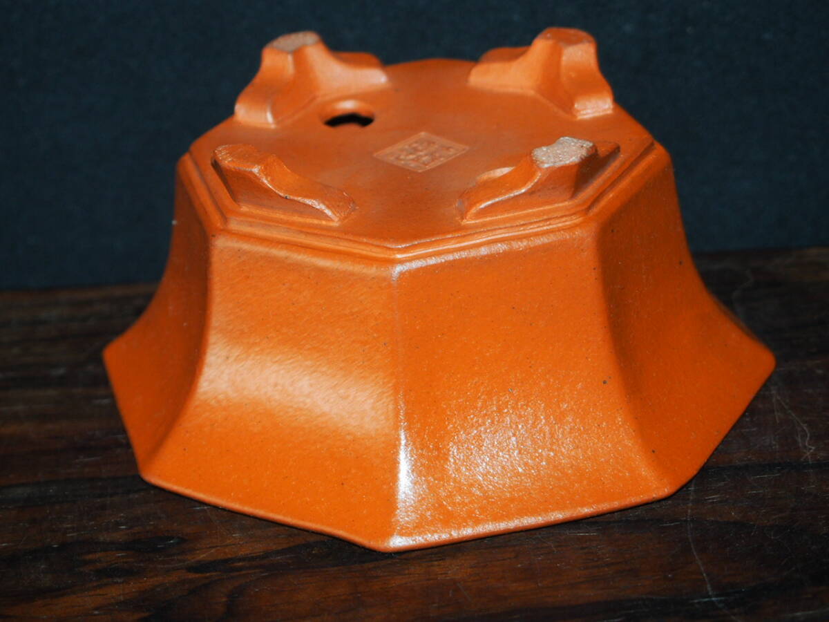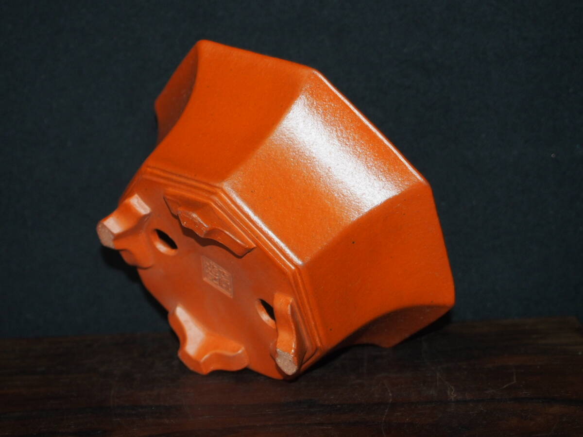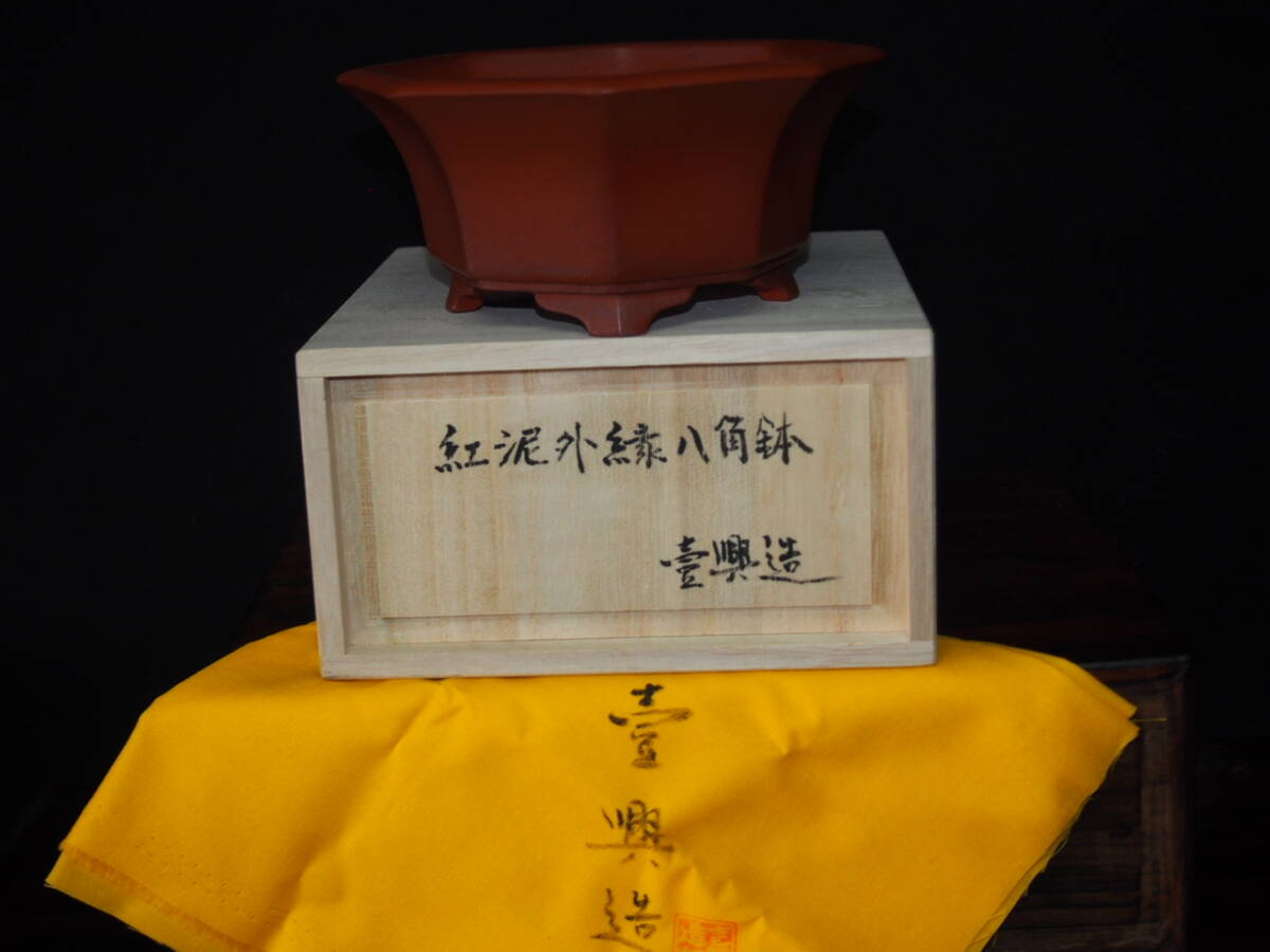 | 『大和魂』【常滑①壱興・渡邉一弘】紅泥反縁段脚八角鉢・径14.0cm・共箱布付・松柏に最適・貴重な逸品・人気作家 | ||