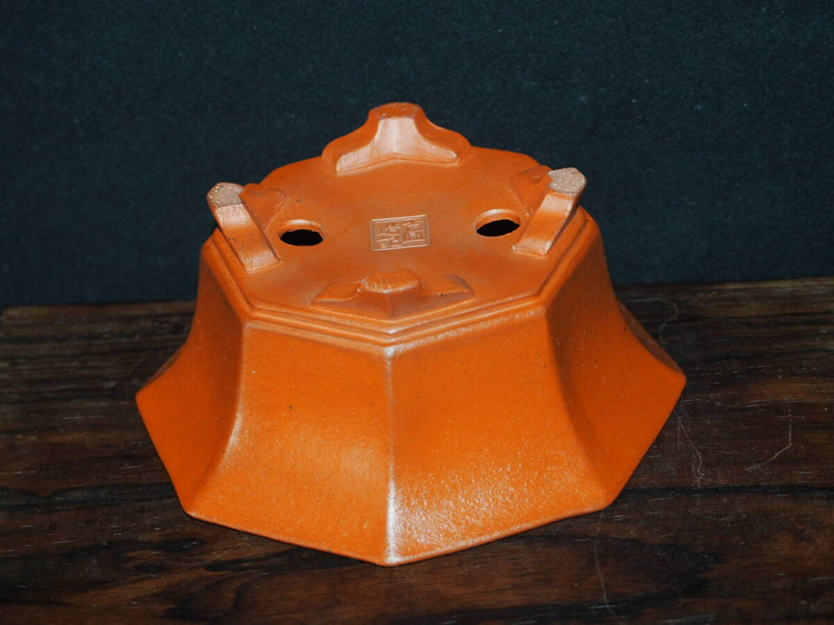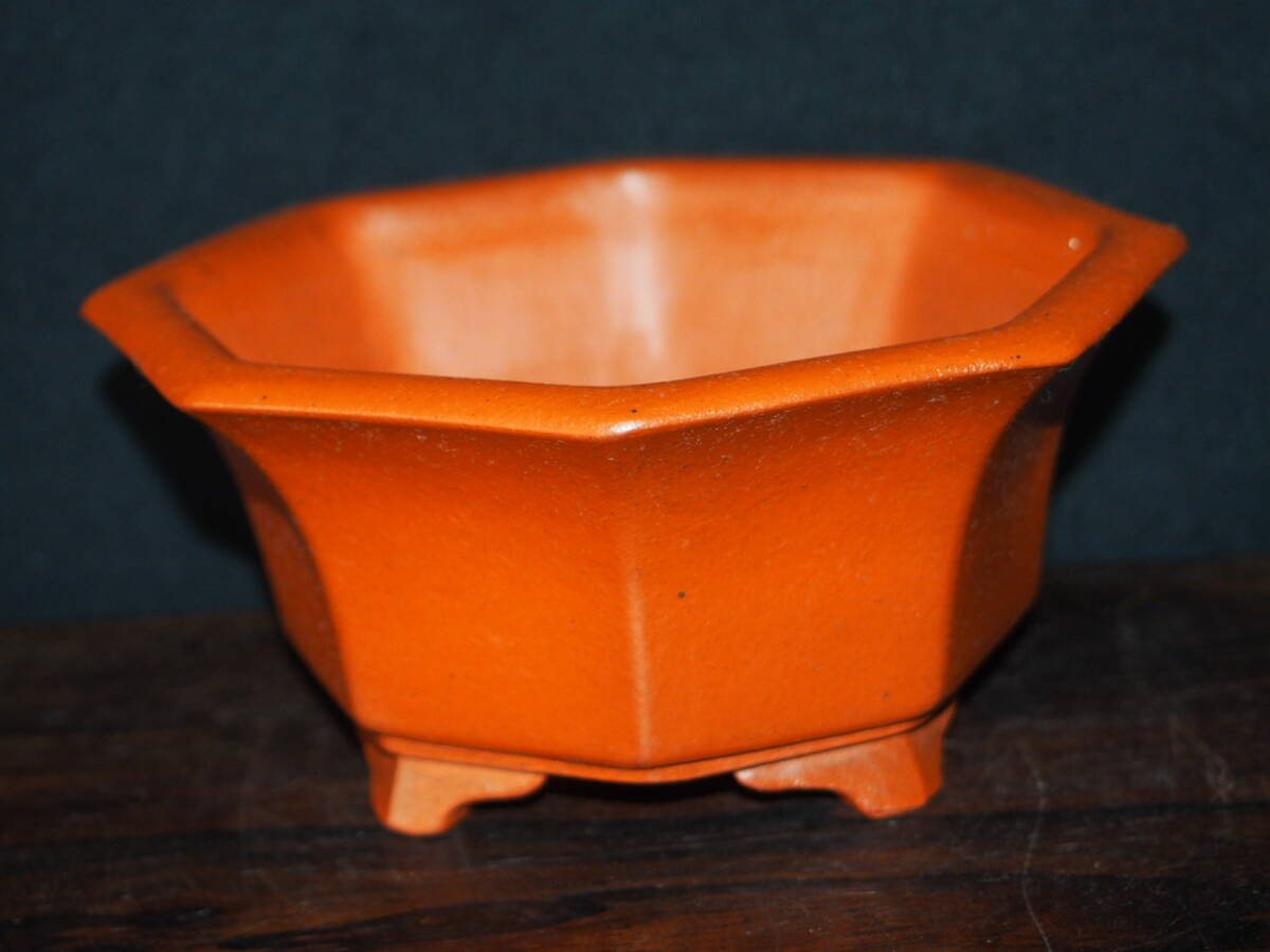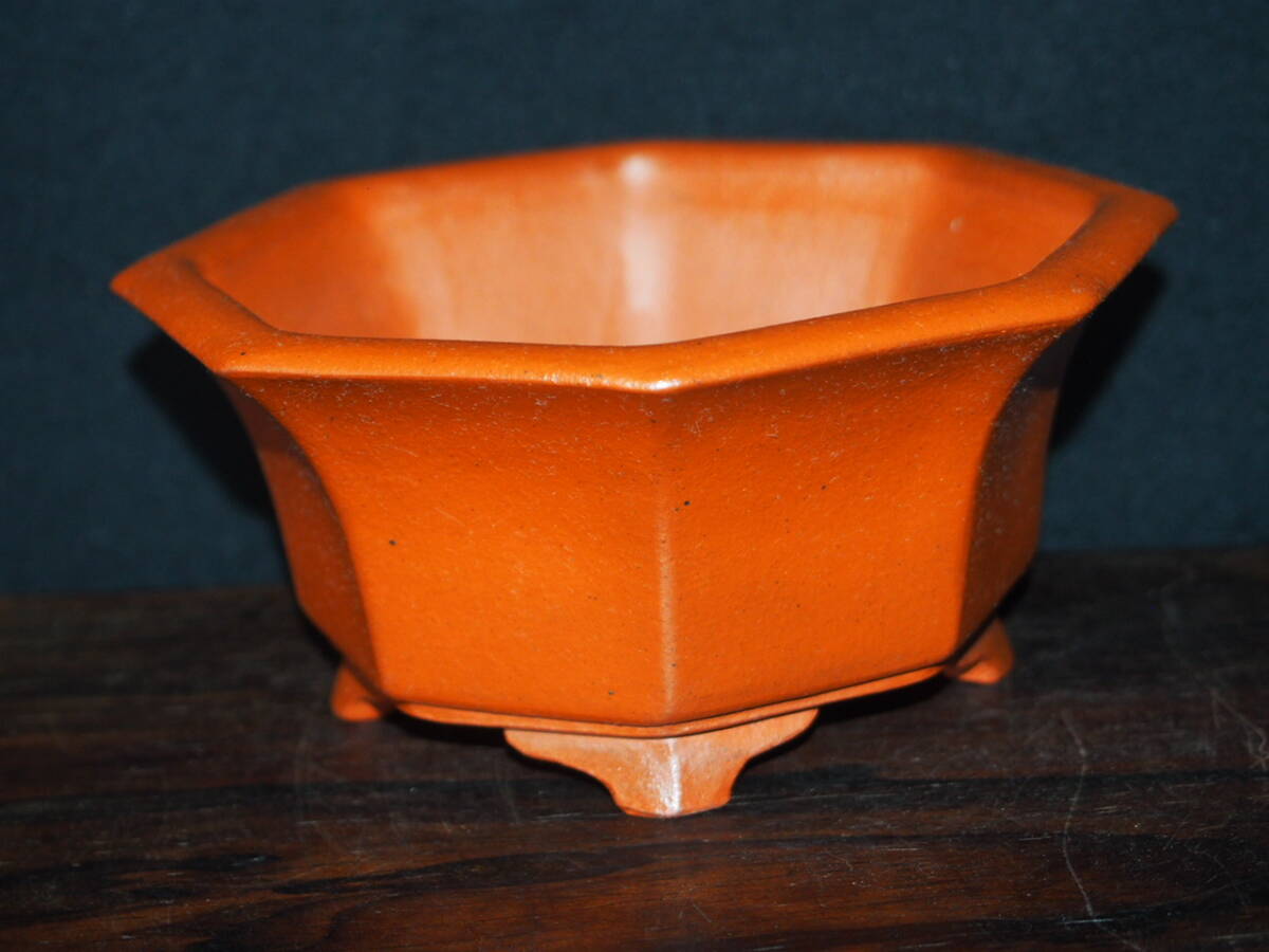 | 『大和魂』【常滑①壱興・渡邉一弘】紅泥反縁段脚八角鉢・径14.0cm・共箱布付・松柏に最適・貴重な逸品・人気作家 | ||