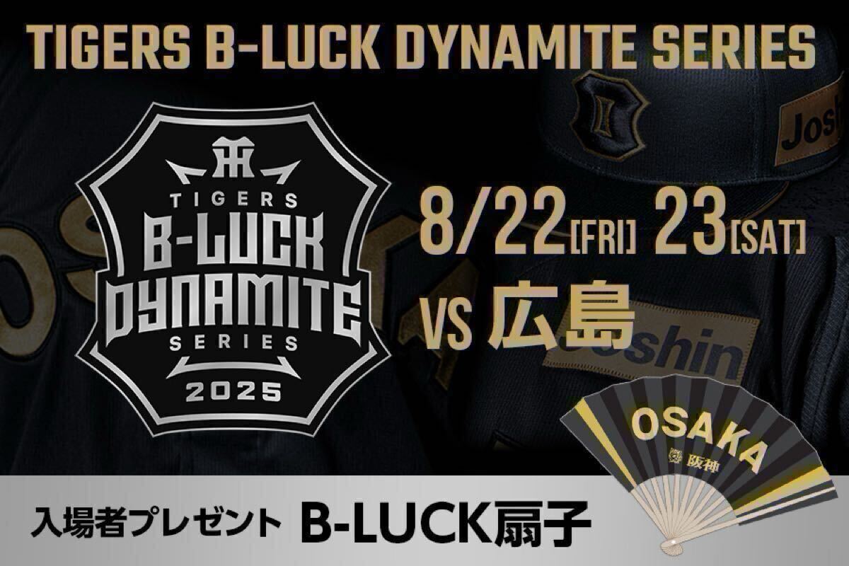 ● 2025年新イベント 「TIGERS B-LUCK DYNAMITE SERIES」(タイガース ブラック ダイナマイト シリーズ) を、SGLスタジアムでも開催!8月22日(金)、選手が「黒色」をベースとしたユニフォームを身に纏って戦います!さらに、試合開始2時間後までにご入場の入場券をお持ちの方全員に「B-LUCK扇子」をプレゼント!タイガース夏の新イベントにご期待ください!