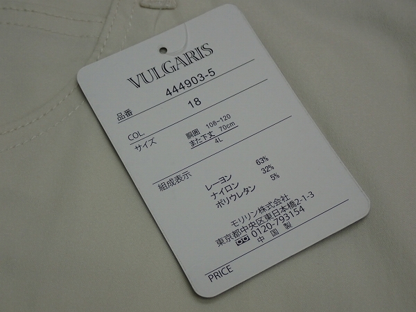表記 4L 実寸 ウエスト108cm 股下69cm 股上33cm わたり35.5cm 裾幅24cm 多少の誤差はご了承下さい。 | |