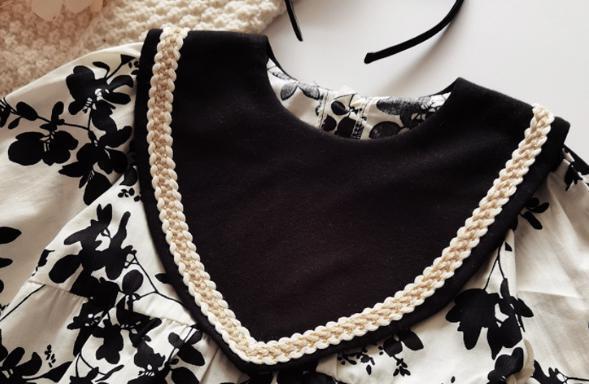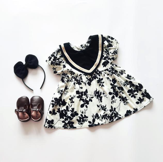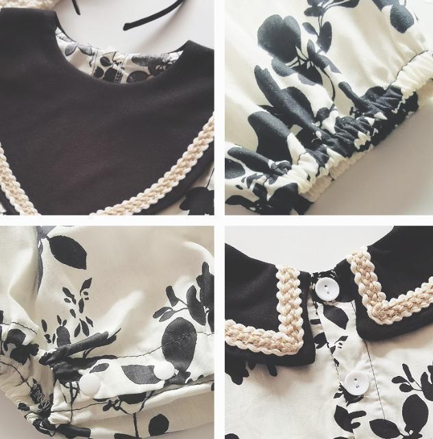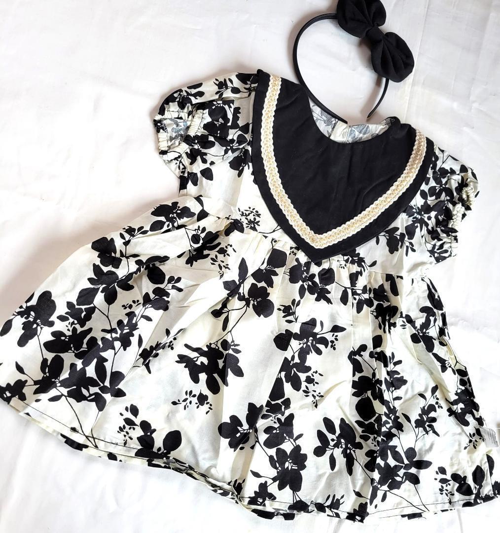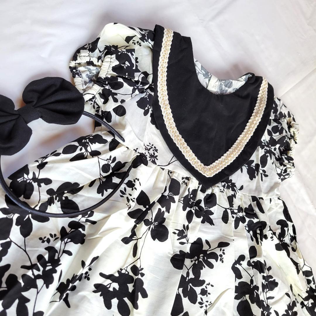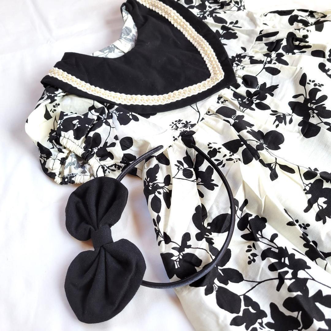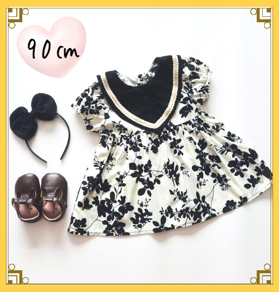 90㎝ カチューシャ付き フラワー柄 ワンピース モノトーン 半袖 子供服
