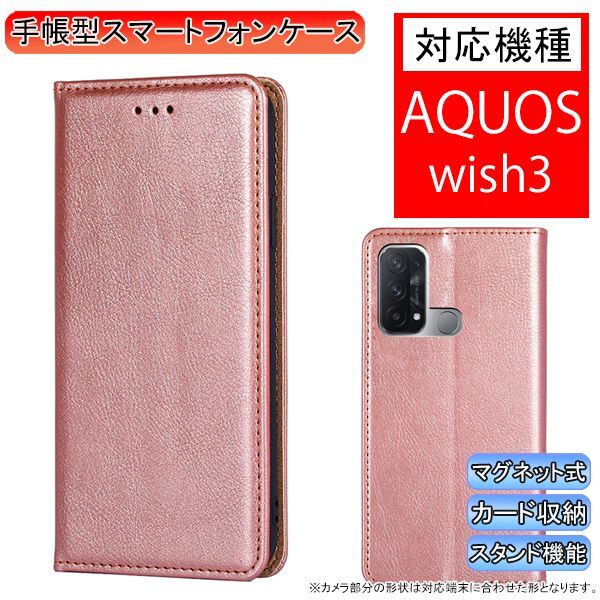 | 商品名 | AQUOS wish3 用 スマホケース 新品 手帳型 レザー カード収納 携帯ケース アクオス ウィッシュ ローズ |