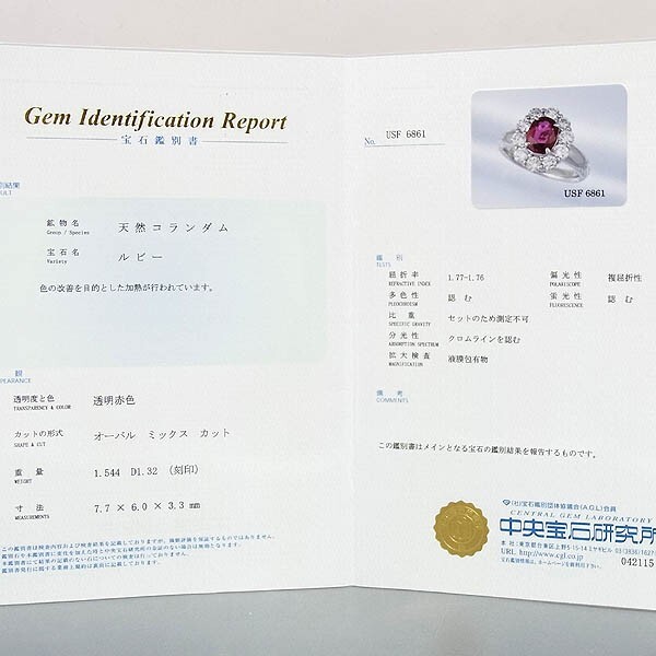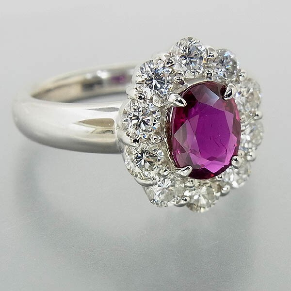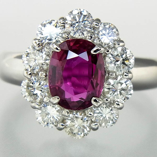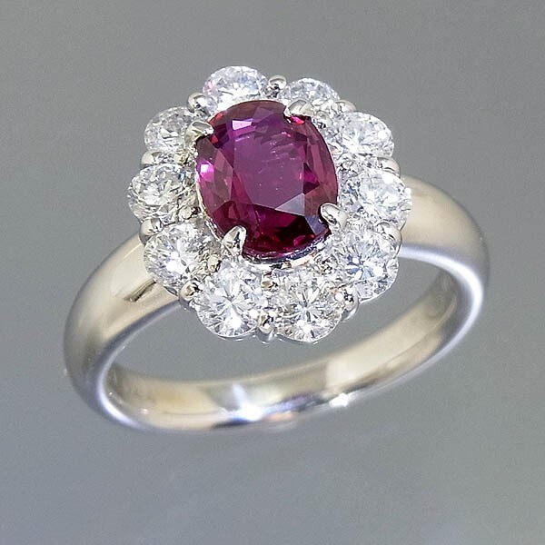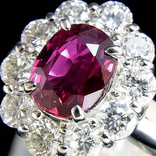 Pt900 ルビー指輪 R1.544ct/D 1.36ct/9.3g/12号 |