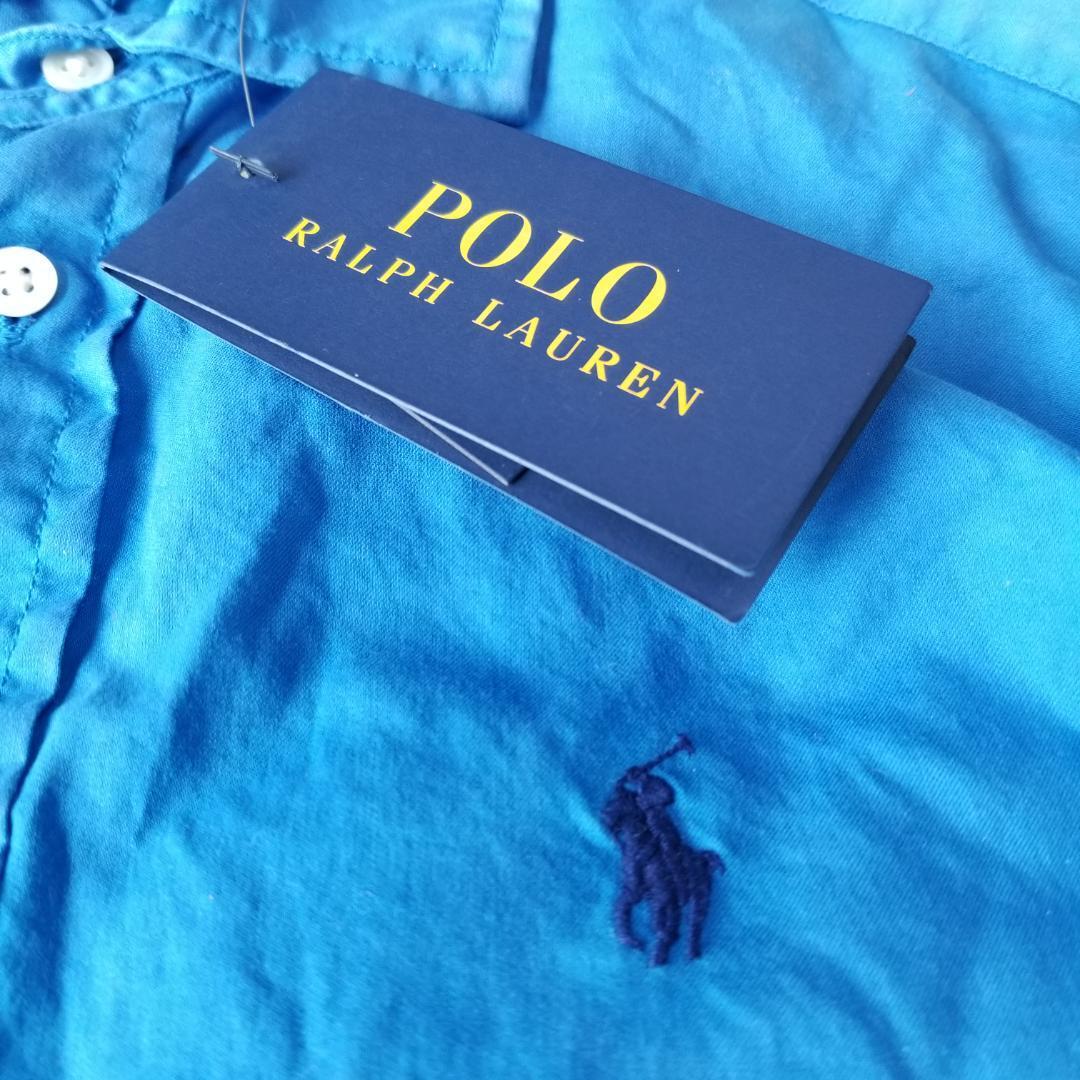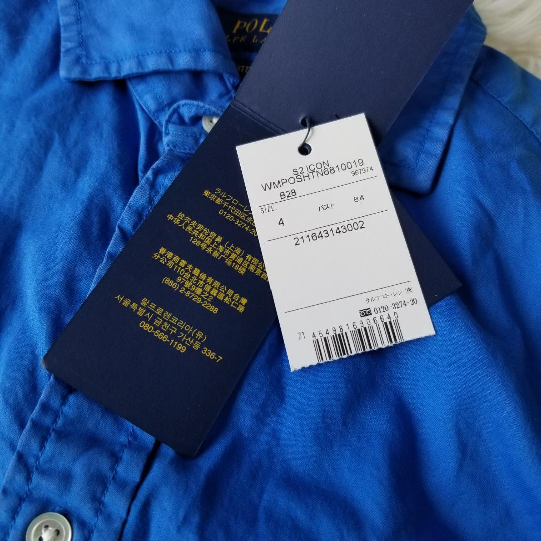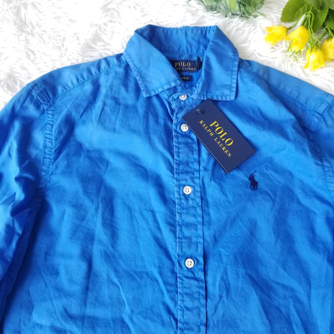【新品タグ付】ポロラルフローレン シャツ 長袖 刺繍ロゴ ブルー キッズ レディース 4サイズ XL コットン ブラウス POLO RALPH LAUREN【648】