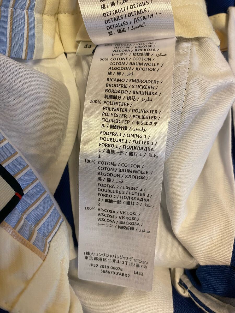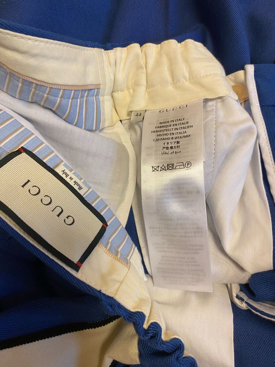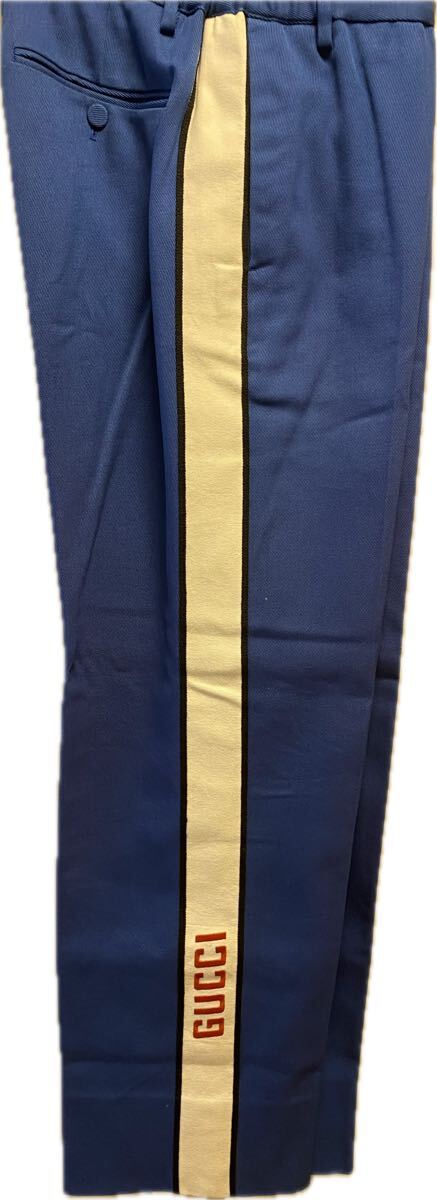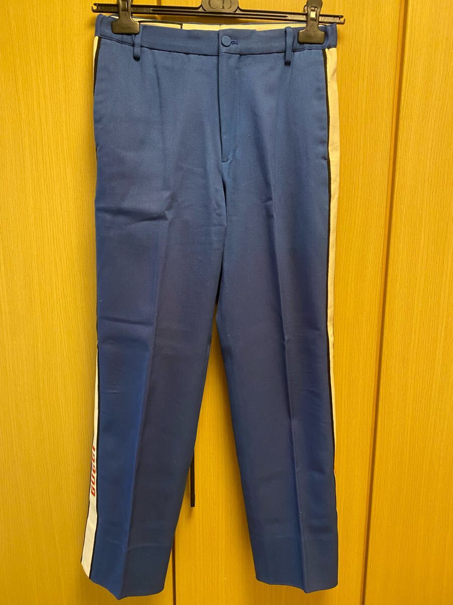 正規 19SS GUCCI グッチ Alessandro Michele アレッサンドロ ミケーレ サイドライン ロゴ 刺繍 スラックス コットンパンツ 青 44