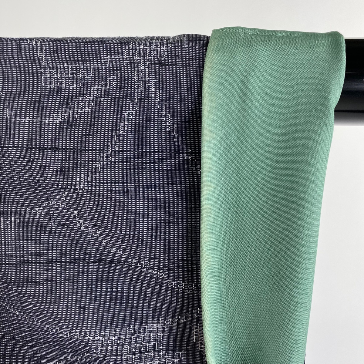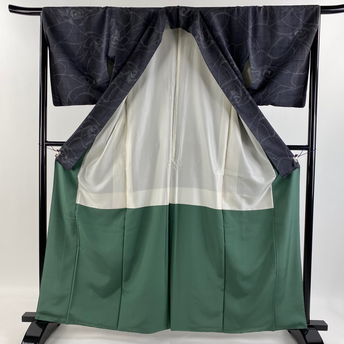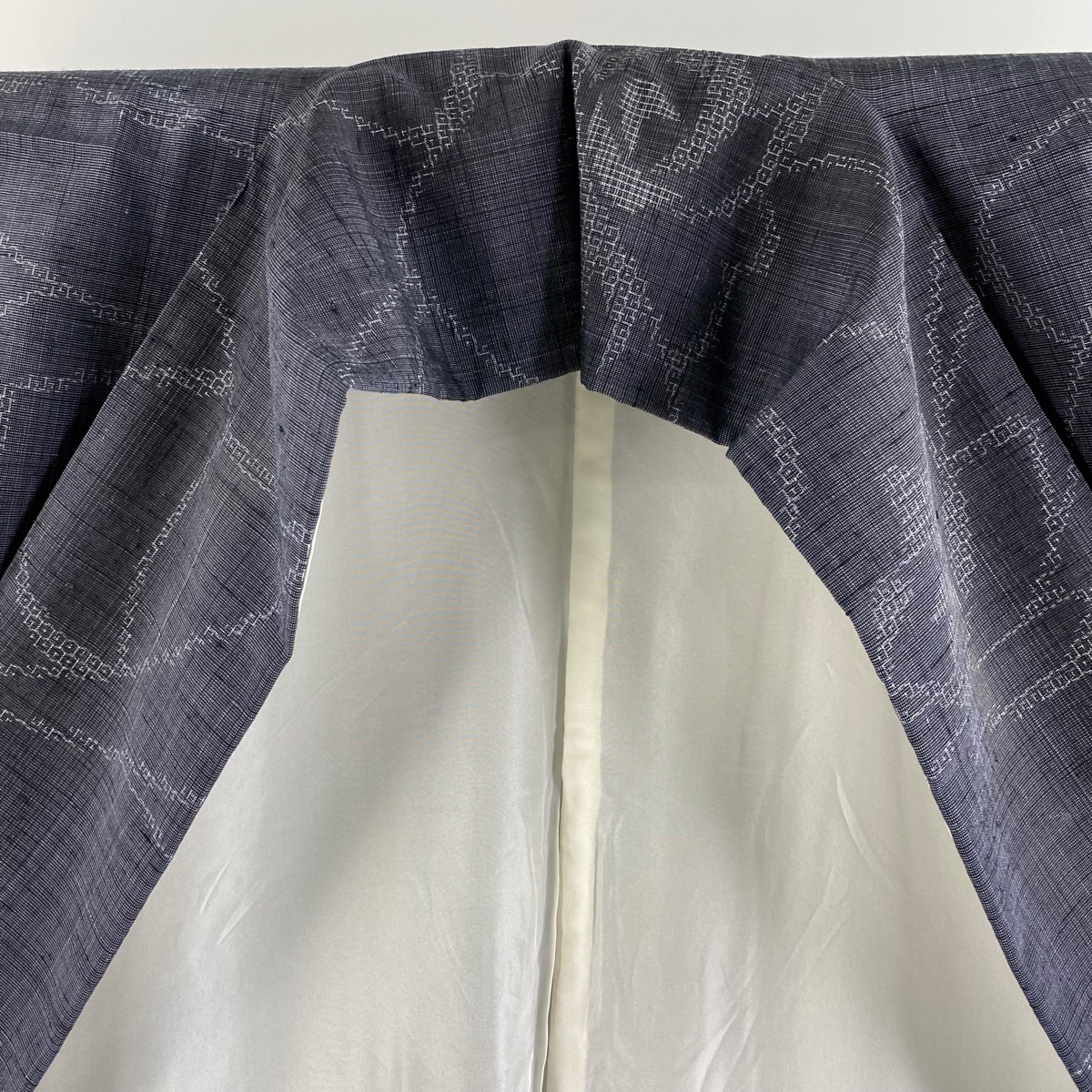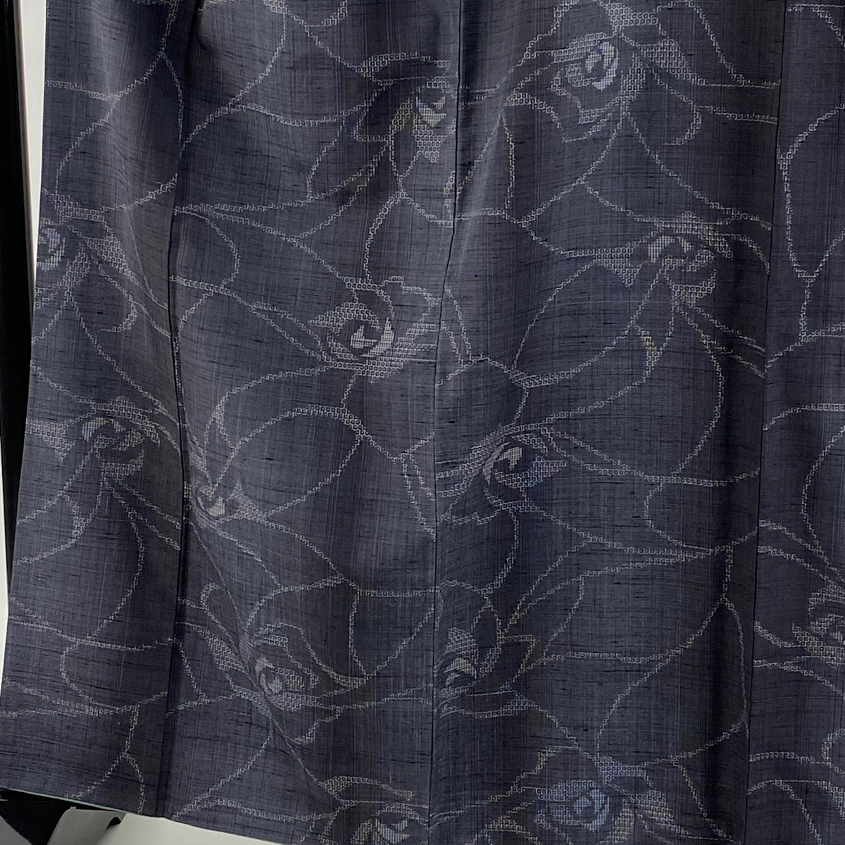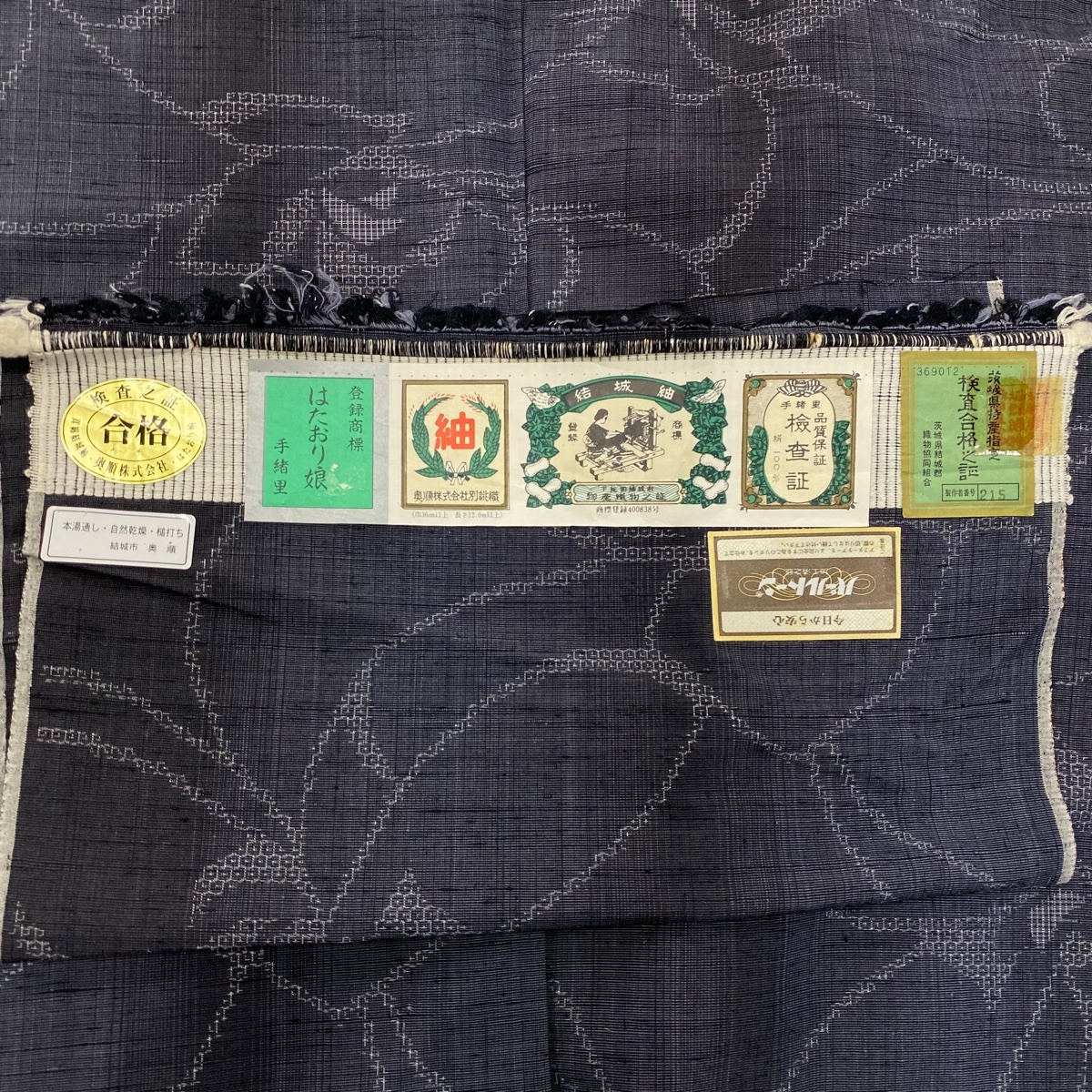 | 結城紬 逸品 証紙 はたおり娘 奥順 薔薇 亀甲絣 青灰色 袷 身丈162 裄丈63.5 S 正絹 【中古】 |
