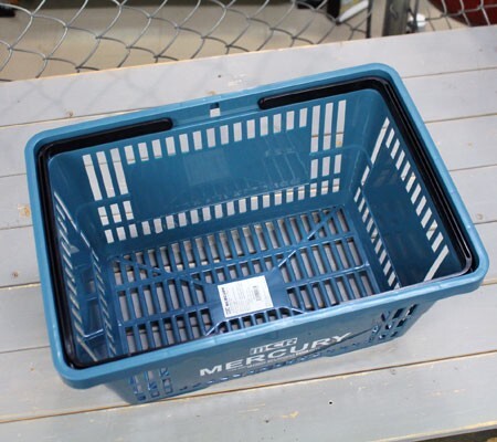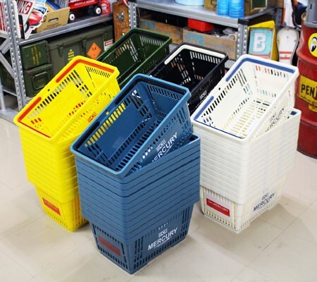 ・スーパーマーケットの買い物かごをモチーフにしたプラスチック製バスケット。