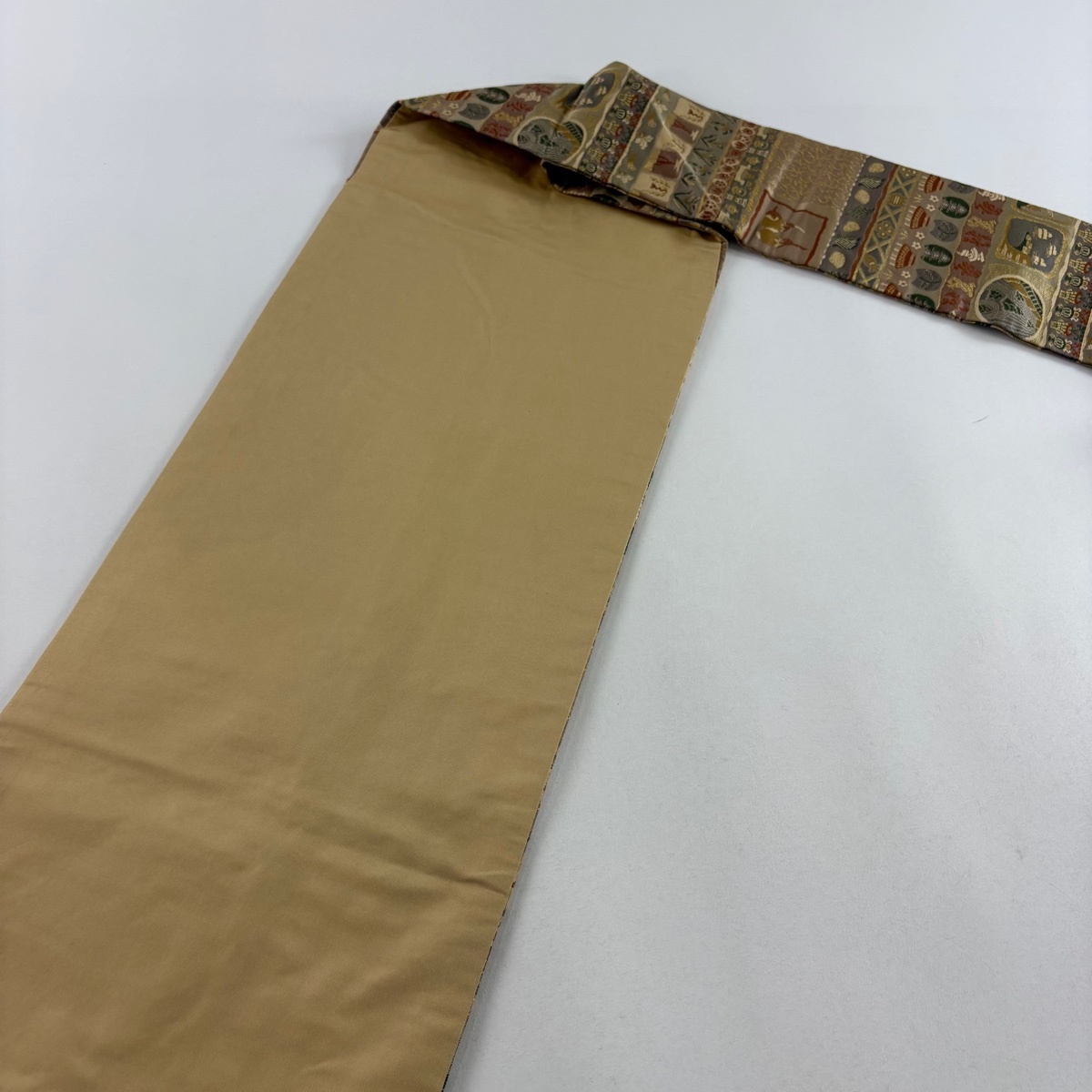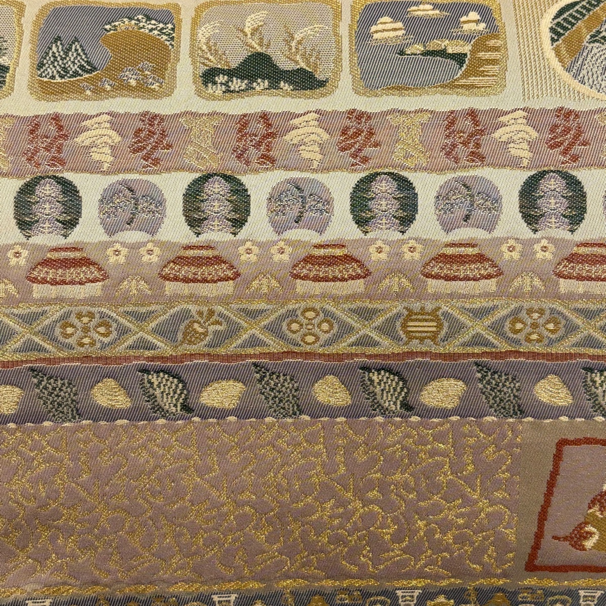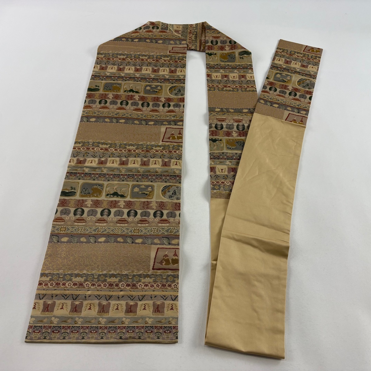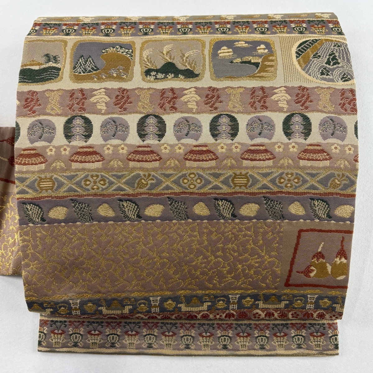 | 名古屋帯 美品 秀品 草花 風景 金糸 薄茶色 正絹 【中古】 |