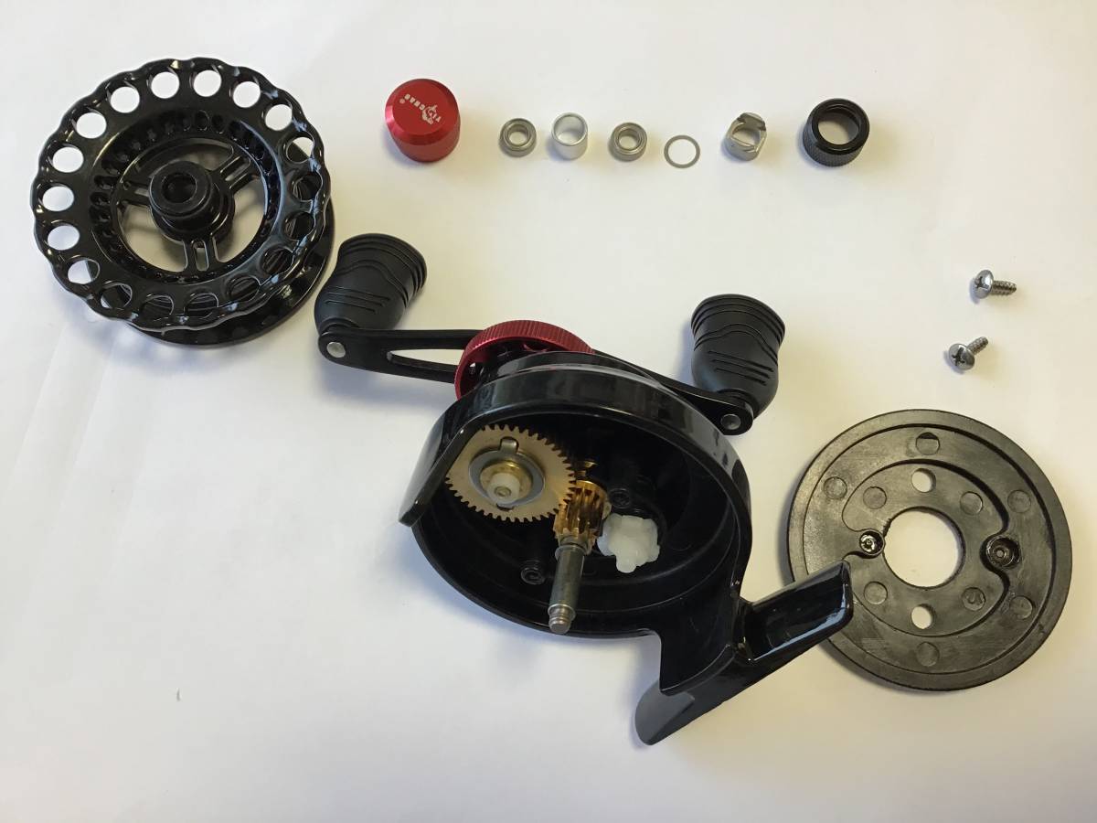 筏 カセ リール 右巻き ドラグ付き チョイ出し機能付き 新品 ブラックレッド ☆おまけラインオイル付き☆ チヌ 黒鯛 イカダ かかり釣り