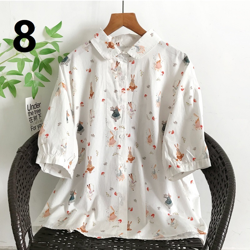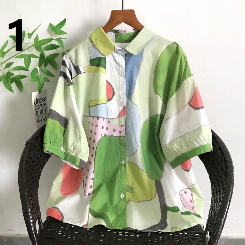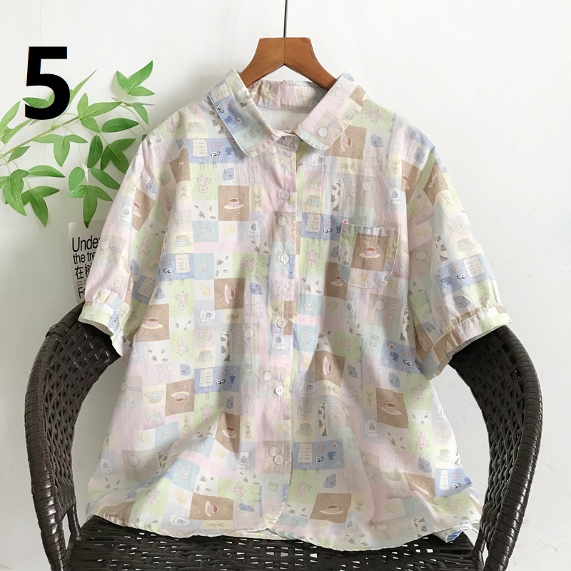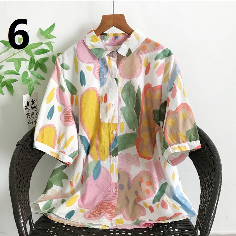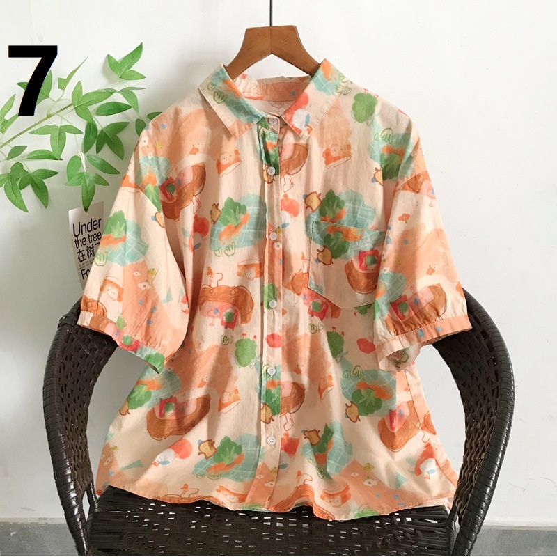 新入荷チュニック トップス ワイシャツ 半袖 ゆったり 綿100% フリーサイズ ナチュラル 通気性肌触り抜群 プリント柄3