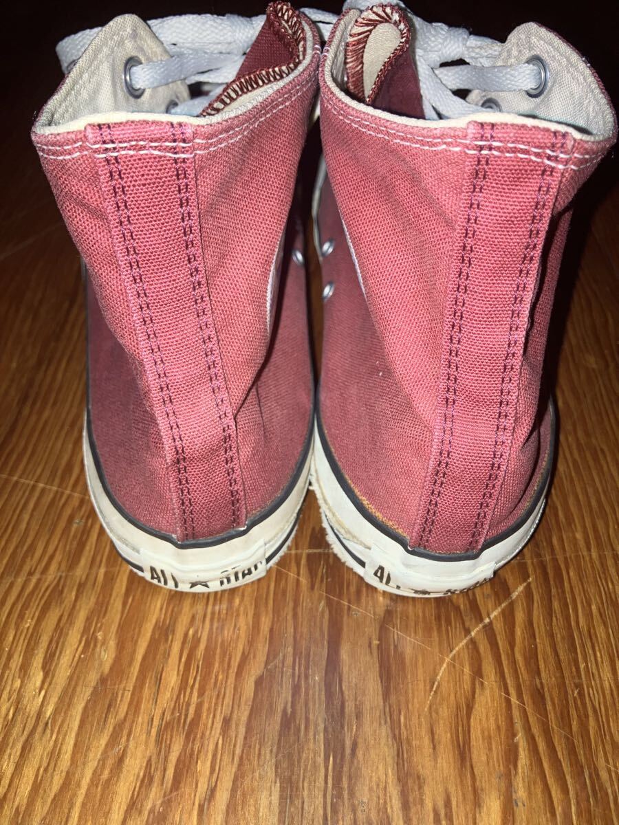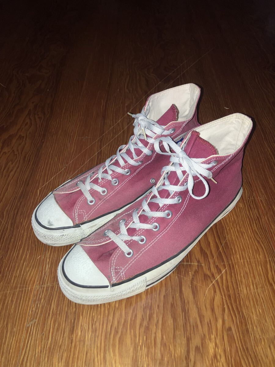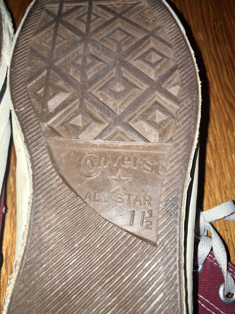 えんじ色?が色落ちしていい色になっていると思います。赤が色落ちなのかも知れません。サイズが大きいですがデカ履きする方にはいいかもしれません。