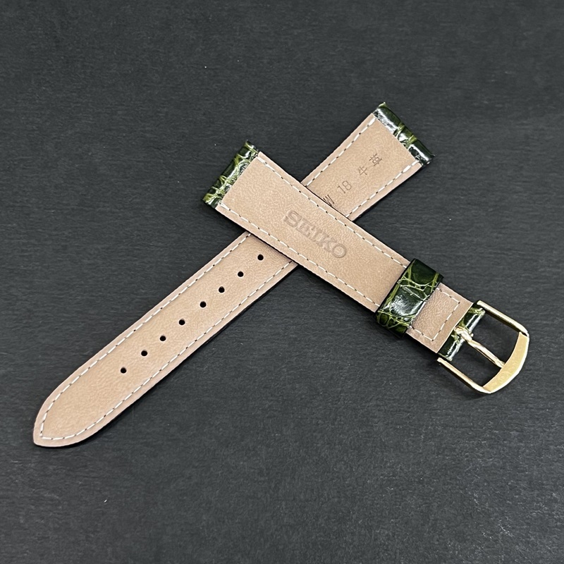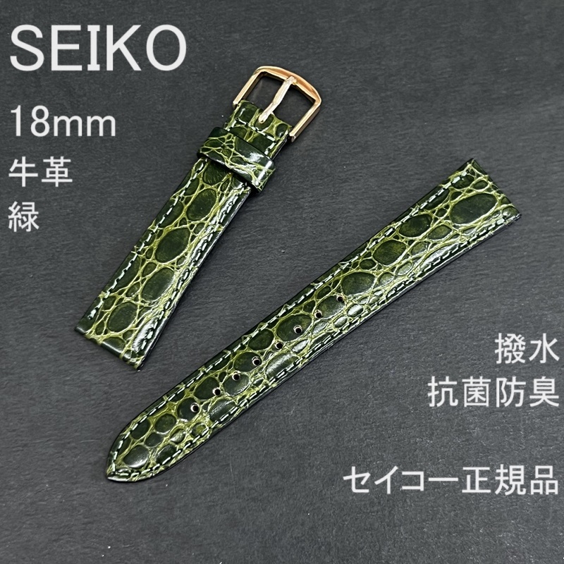 送料無料 バネ棒付★特価 新品★SEIKO 時計ベルト 18mm 牛革バンド 緑 グリーン 緑色 抗菌防臭 撥水★セイコー正規品 定価税込3,630円