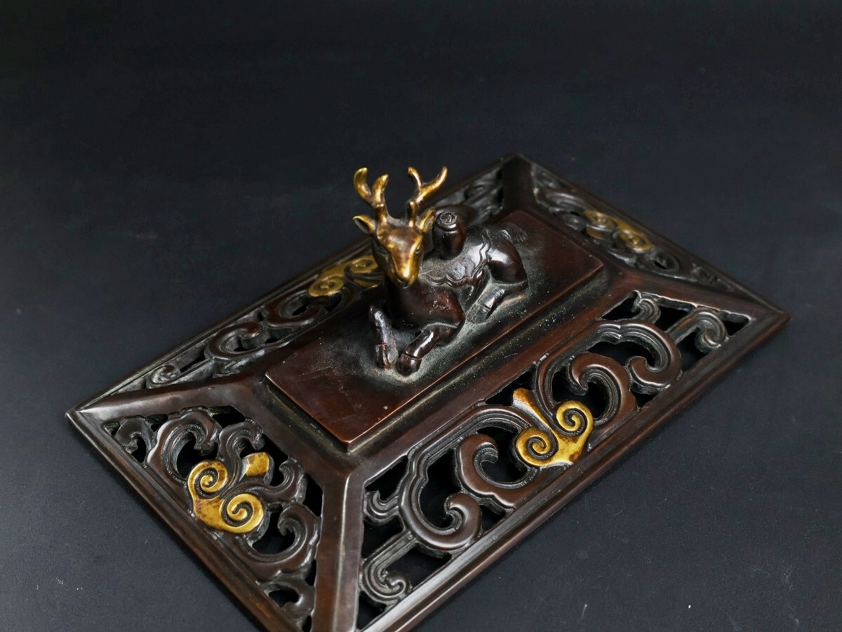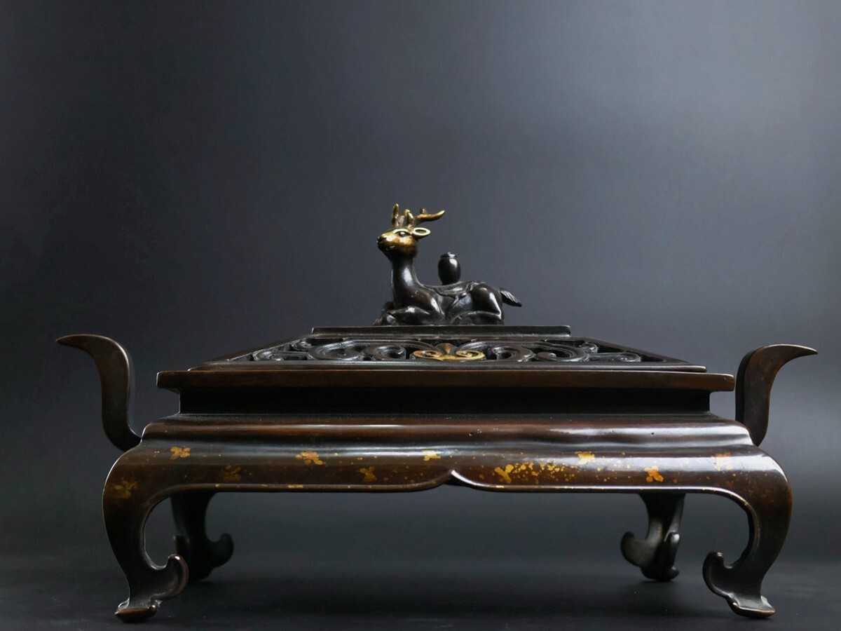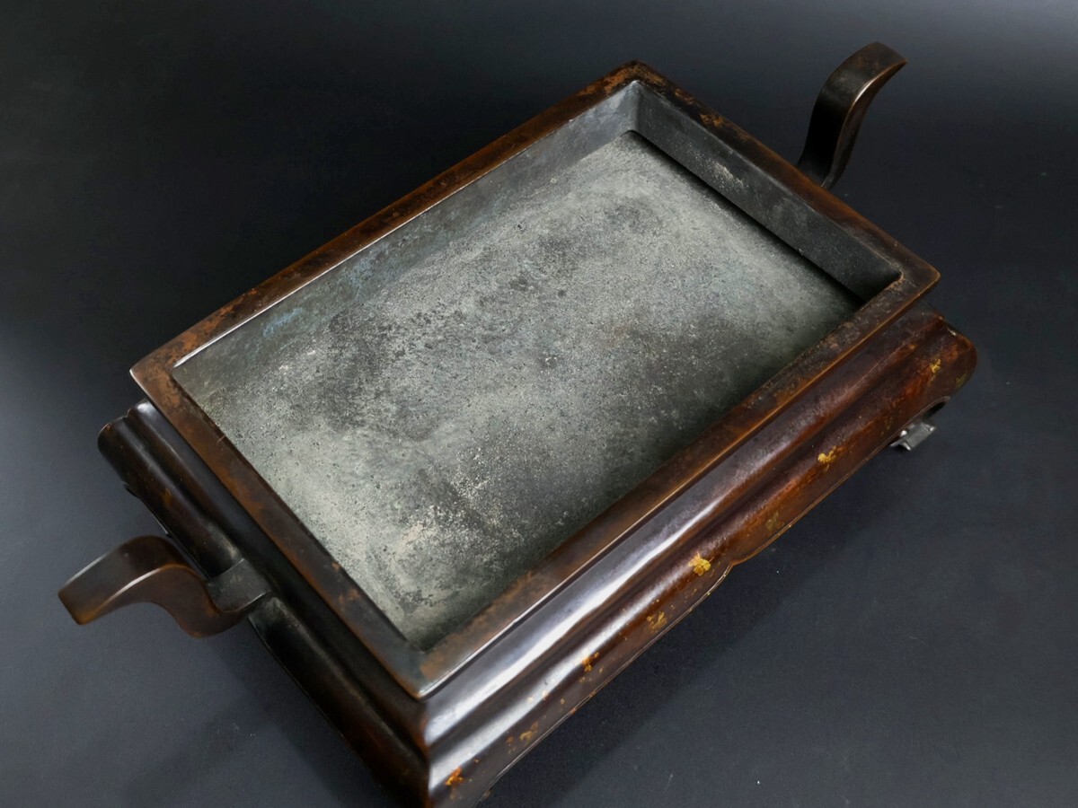 「明代 大明宣徳年製 古銅彫 灑金朝冠耳老銅香薰炉」旧銅器 置物擺件 賞物 中国古美術 旧蔵出