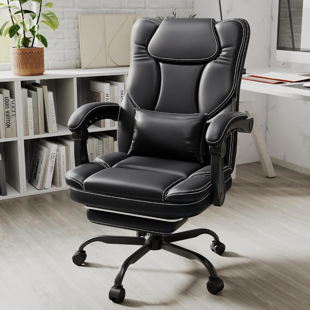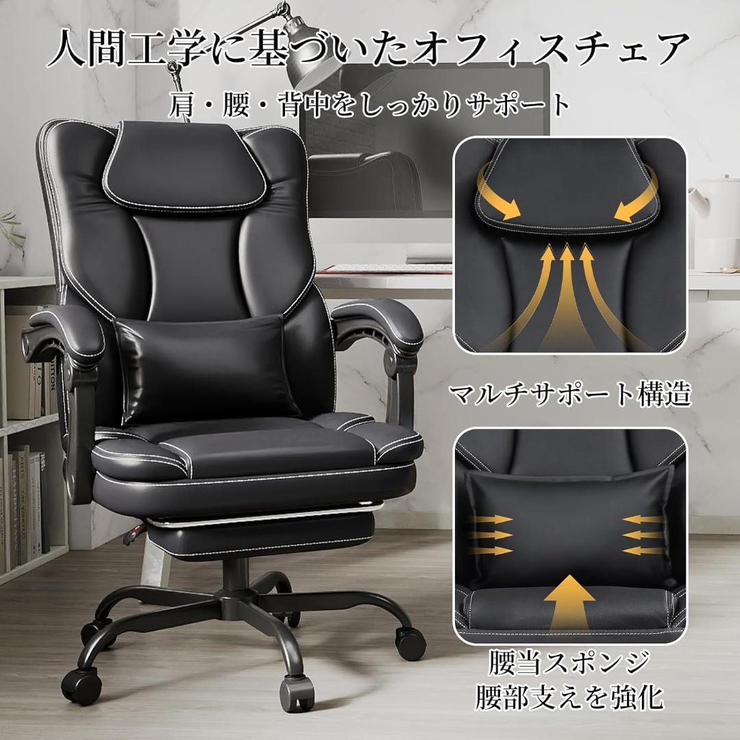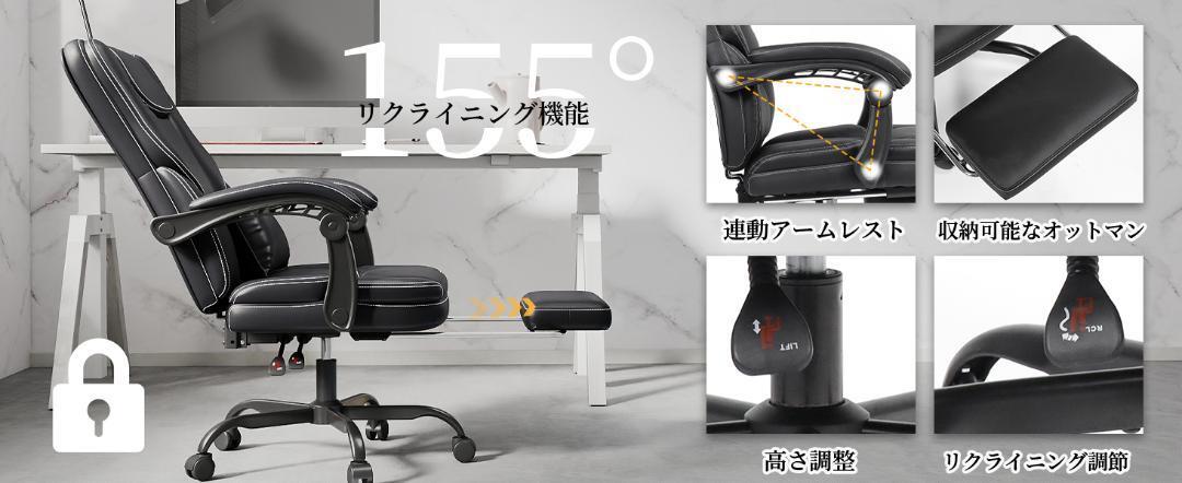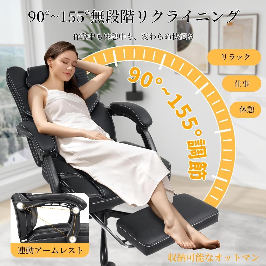 このオフィスチェアは収納式フットレストを装備。背もたれは最大約155度までリクライニング可能で、無段階調整によりお好みの角度で固定できます。この設計により、オフィスでの休憩時間に背もたれで仮眠をとることができ、疲労を効果的に和らげます。