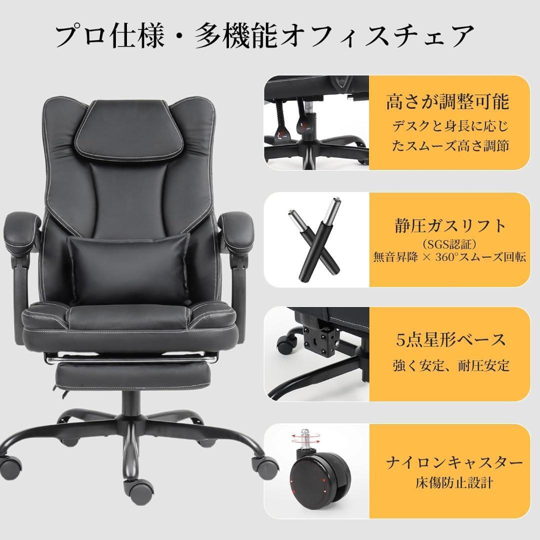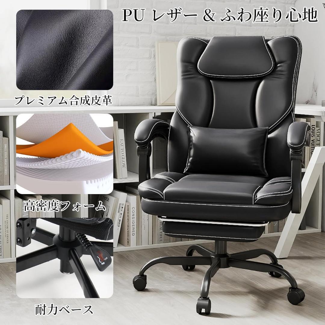 表面材には高耐久性PUレザーを採用。優れた防水性と簡単な手入れが特徴のデスクチェアです。内部には高密度フォームを採用し、快適な座り心地を実現。ベースは高品質素材製で、耐荷重は最大150kg。安全性と耐久性を兼ね備えた、SGS認証取得のガスリフトを採用しております。キャスターは床を傷つけず、360°スムーズに動きます。