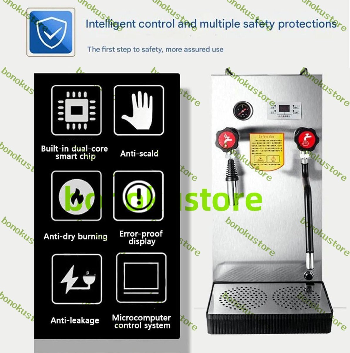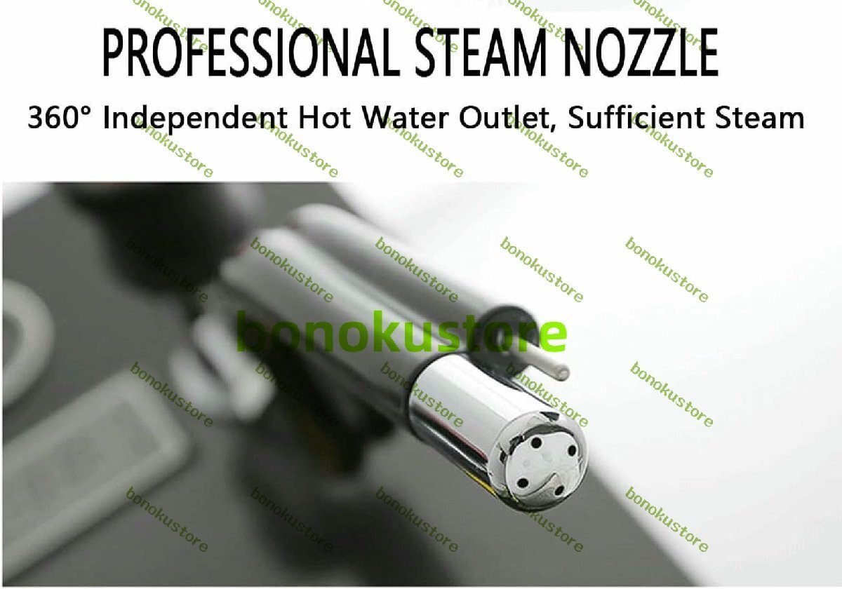 【素材】304ステンレススチール製のダブルボイラーライナー、厚みのある暖炉、独立した熱源に分割可能。LEDデジタルディスプレイ画面、温度をタイムリーに表示。 【プロ仕様のスチームノズル】プロ仕様のスチームノズルを備えた業務用ミルクフォーマー。360°独立給湯口で十分