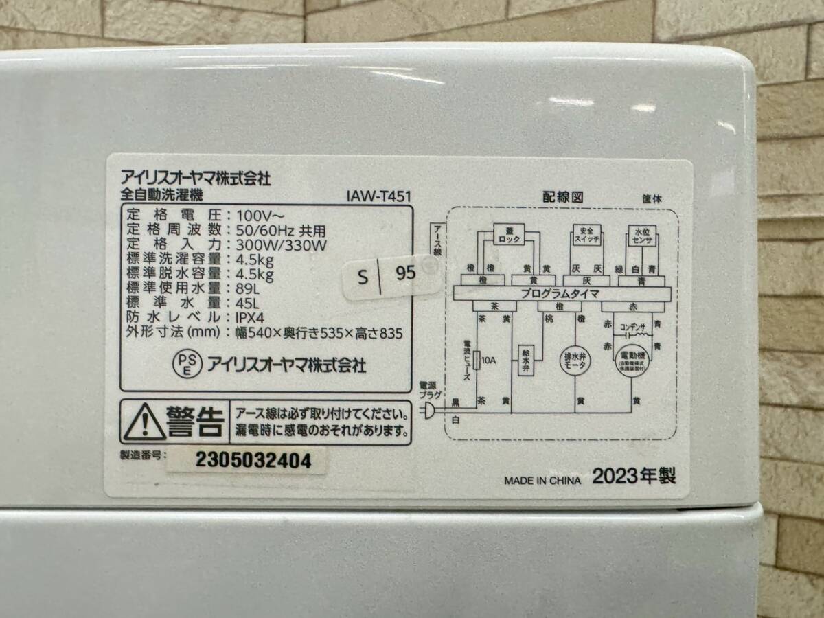 【高年式】大阪送料無料★3か月保障付き★洗濯機★アイリスオーヤマ★4.5kg★2023年★IAW-T451★S-95