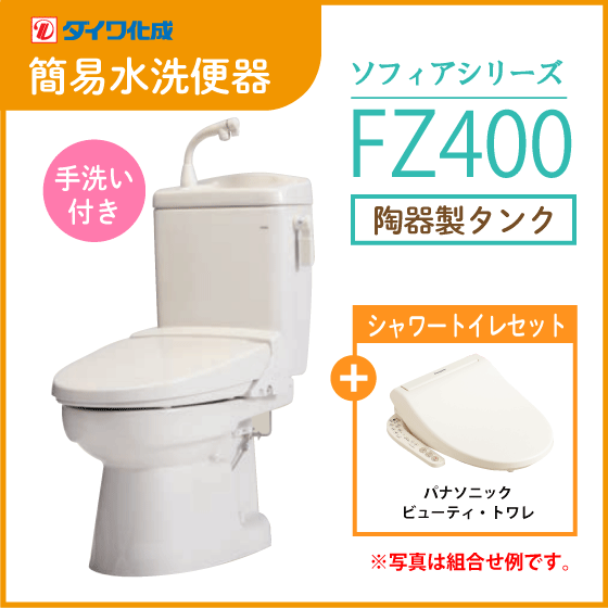 簡易水洗便器 簡易水洗トイレ クリーンフラッシュ「ソフィアシリーズ」 FZ400-H00(手洗付)・ビューティートワレセット ダイワ化成