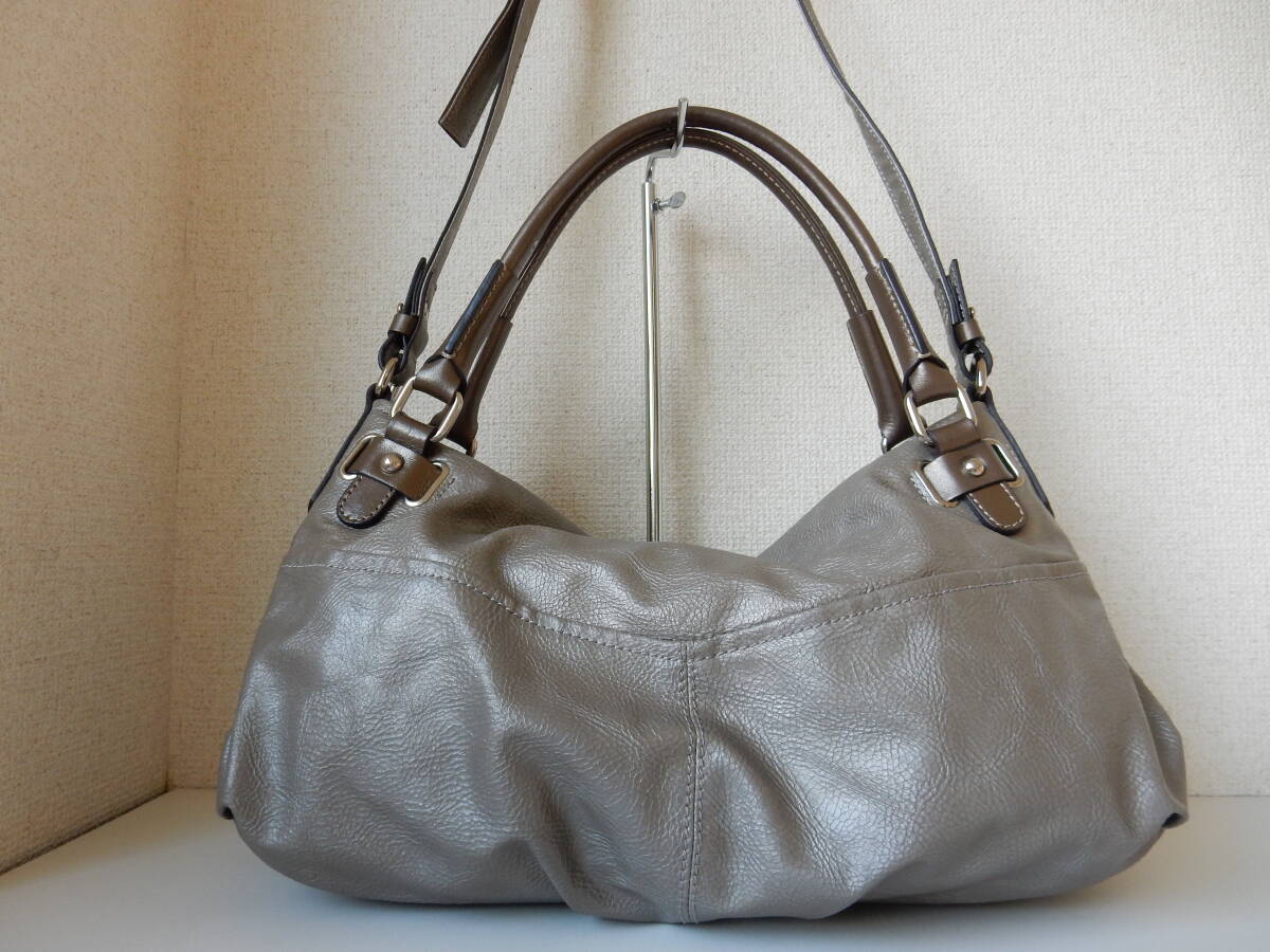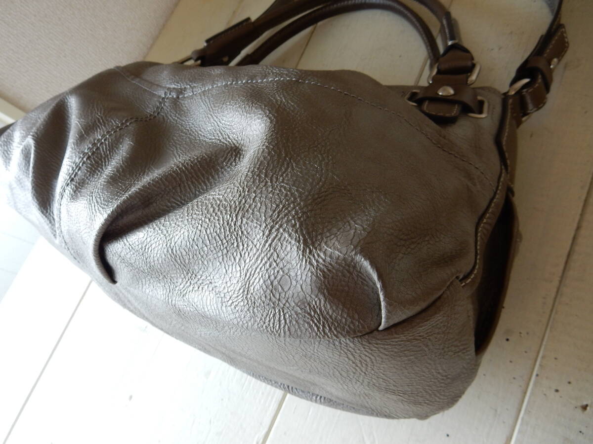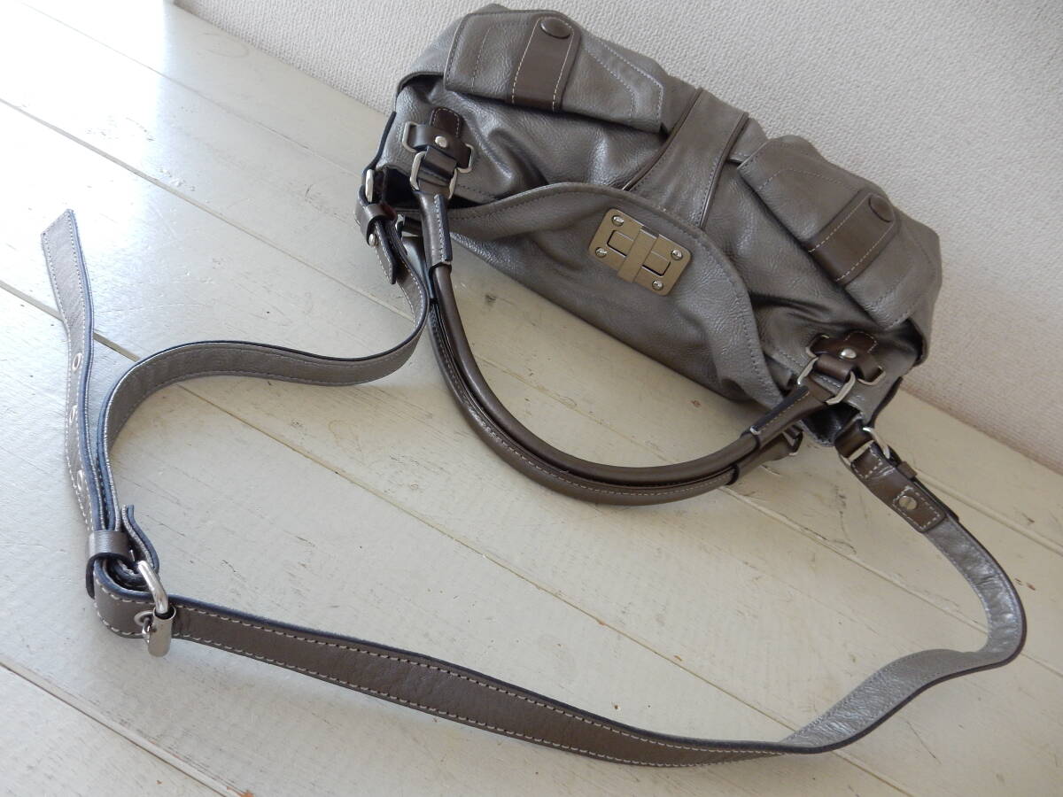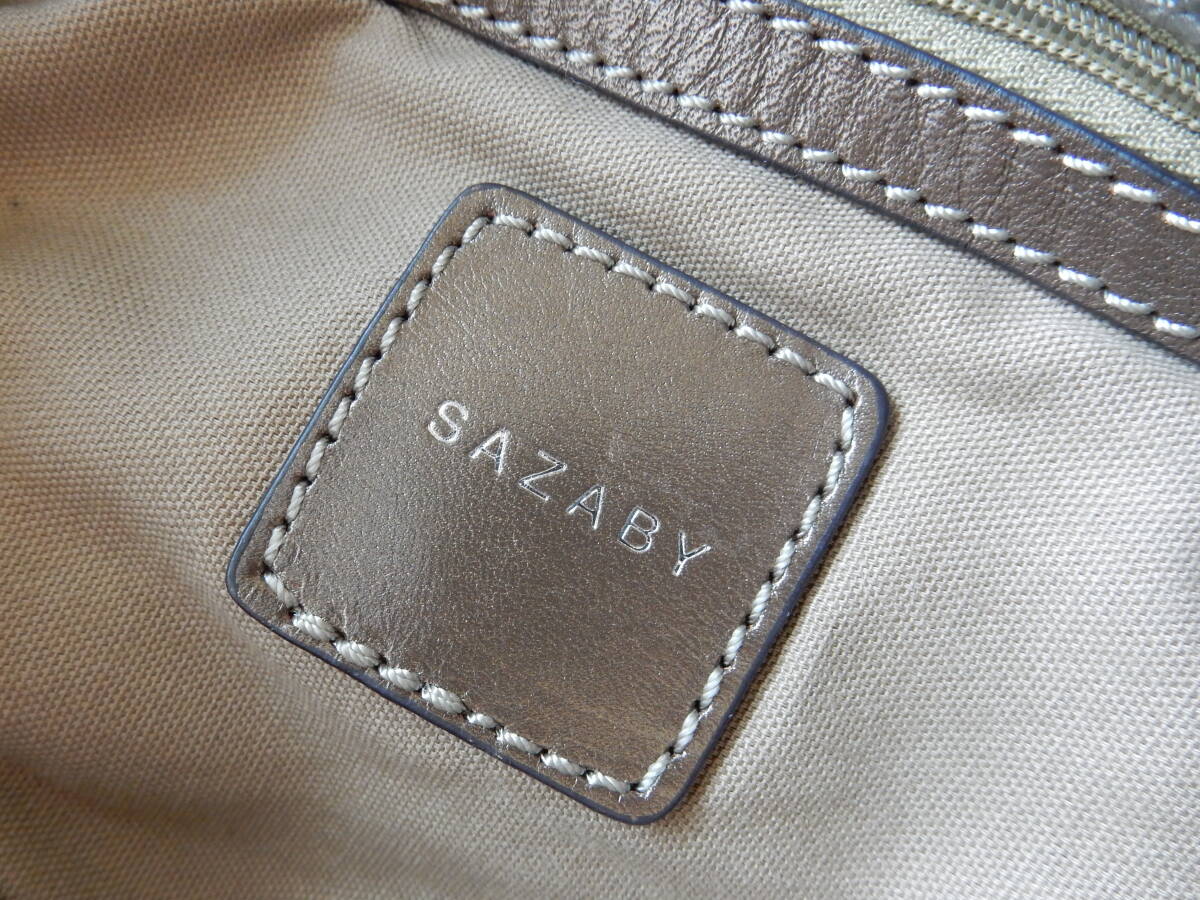 本革☆SAZABY(サザビー)☆5ポケット☆斜め掛けOK☆2WAYトートバッグ(ショルダーベルト付き)グレイッシュオリーブ