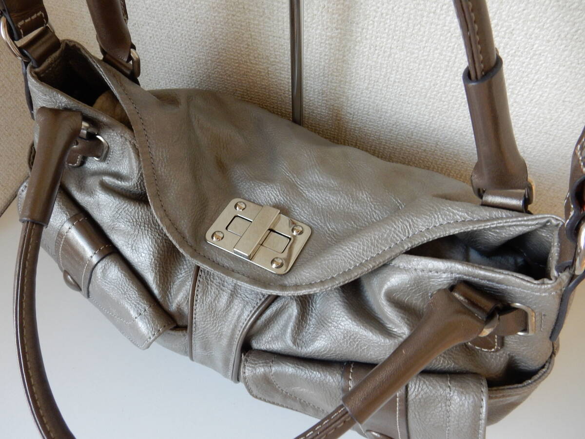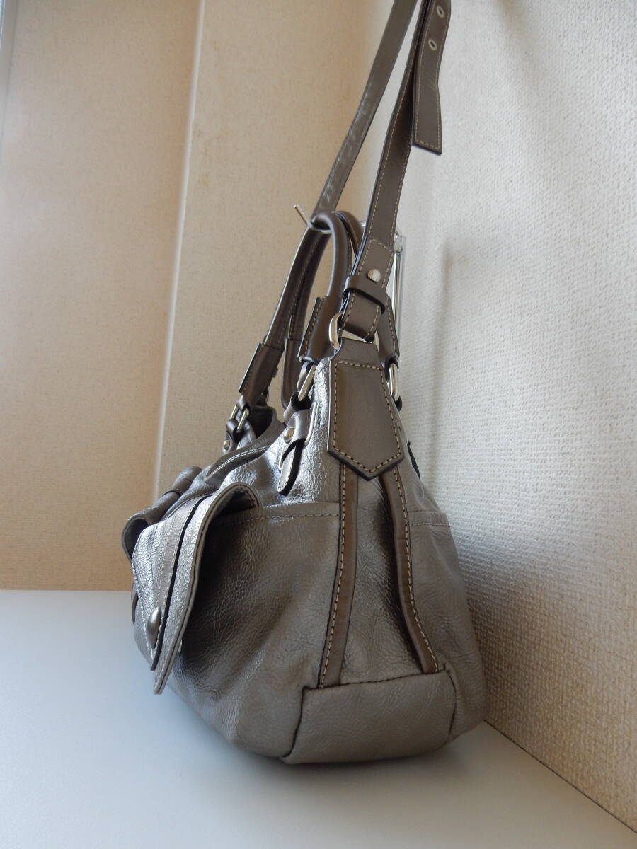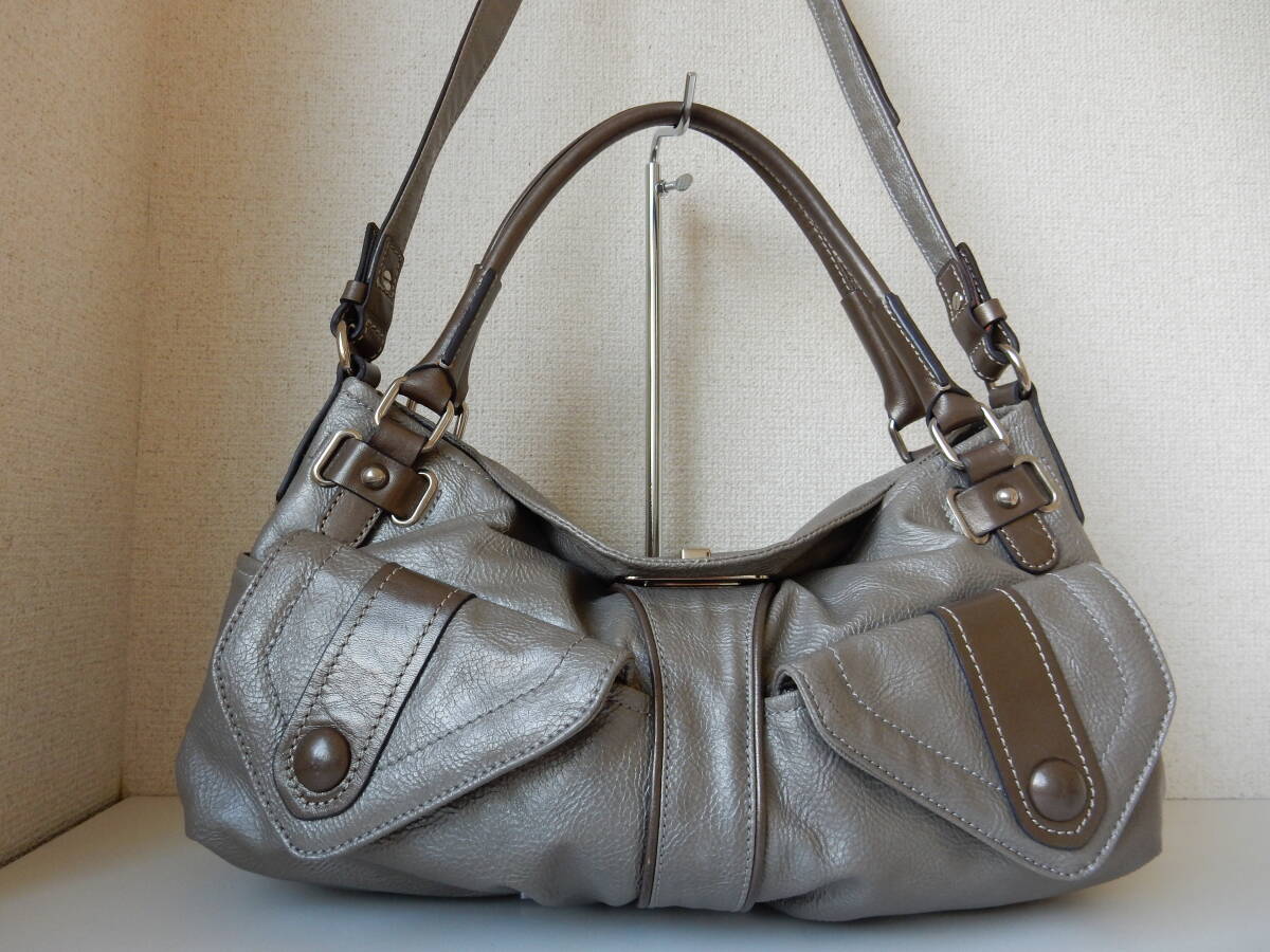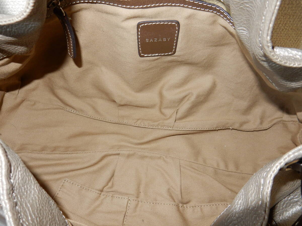 本革☆SAZABY(サザビー)☆5ポケット☆斜め掛けOK☆2WAYトートバッグ(ショルダーベルト付き)グレイッシュオリーブ