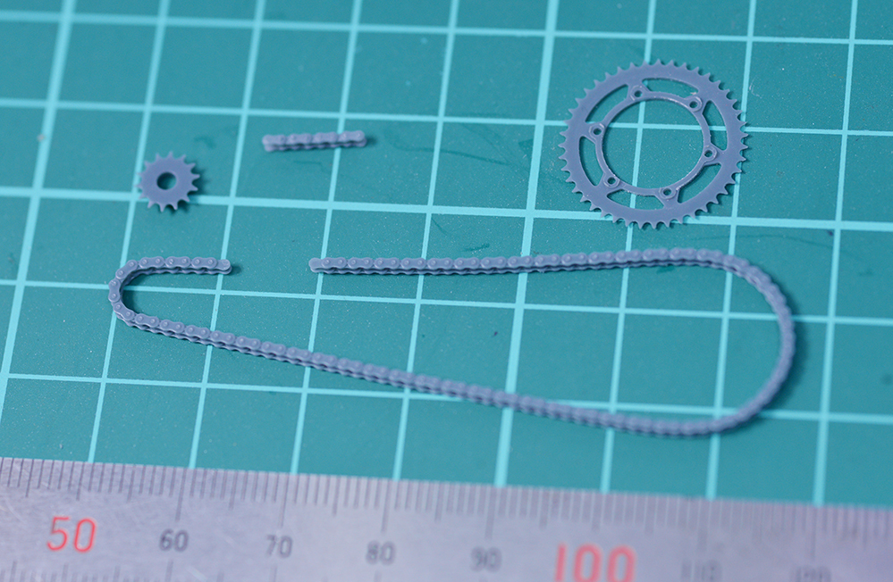 1/12 TZR250(3MA)用チェーン、スプロケットの3Dプリント未塗装レジンキットです