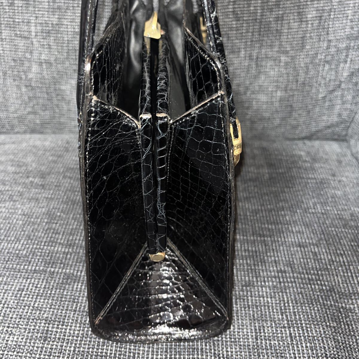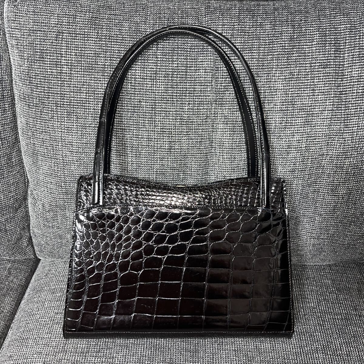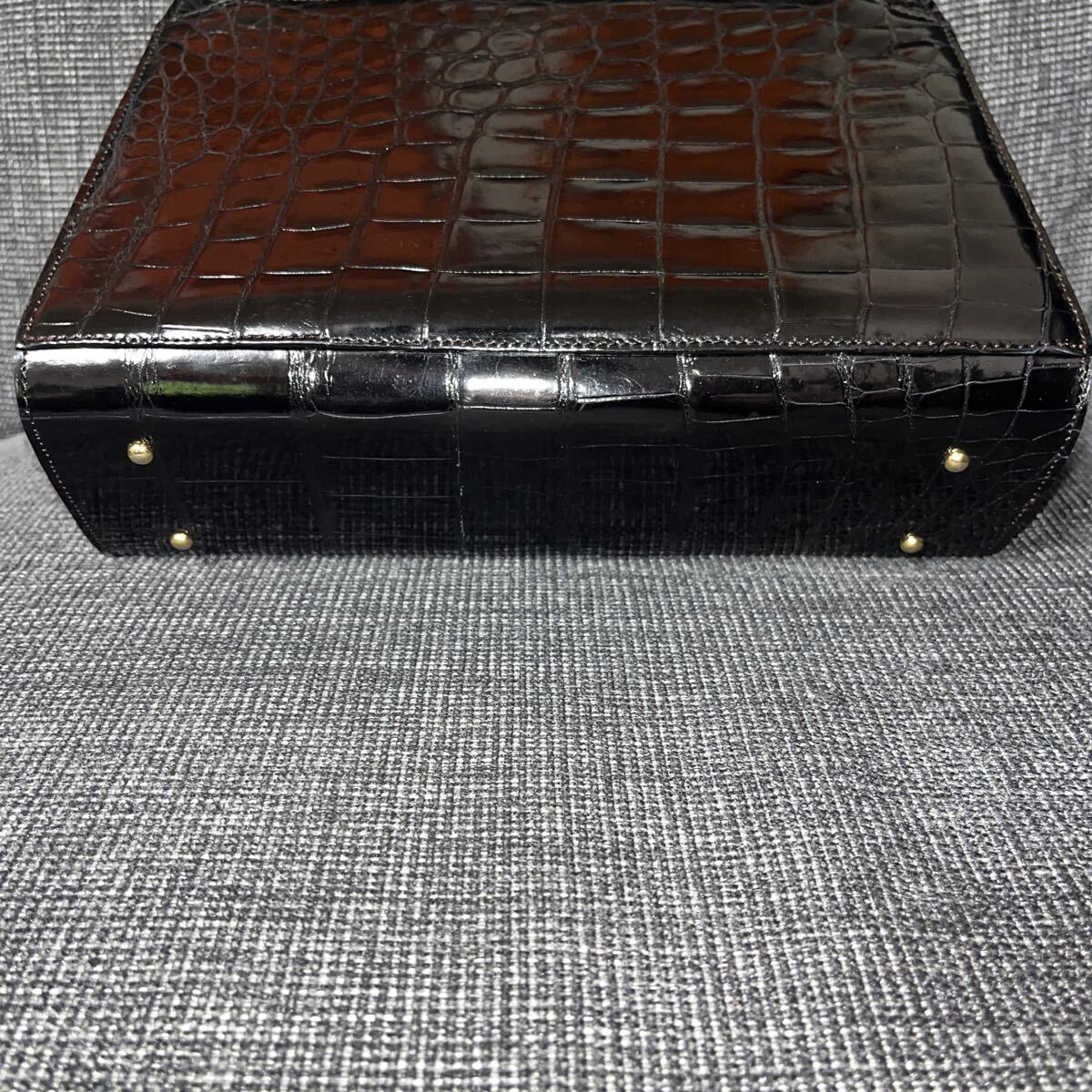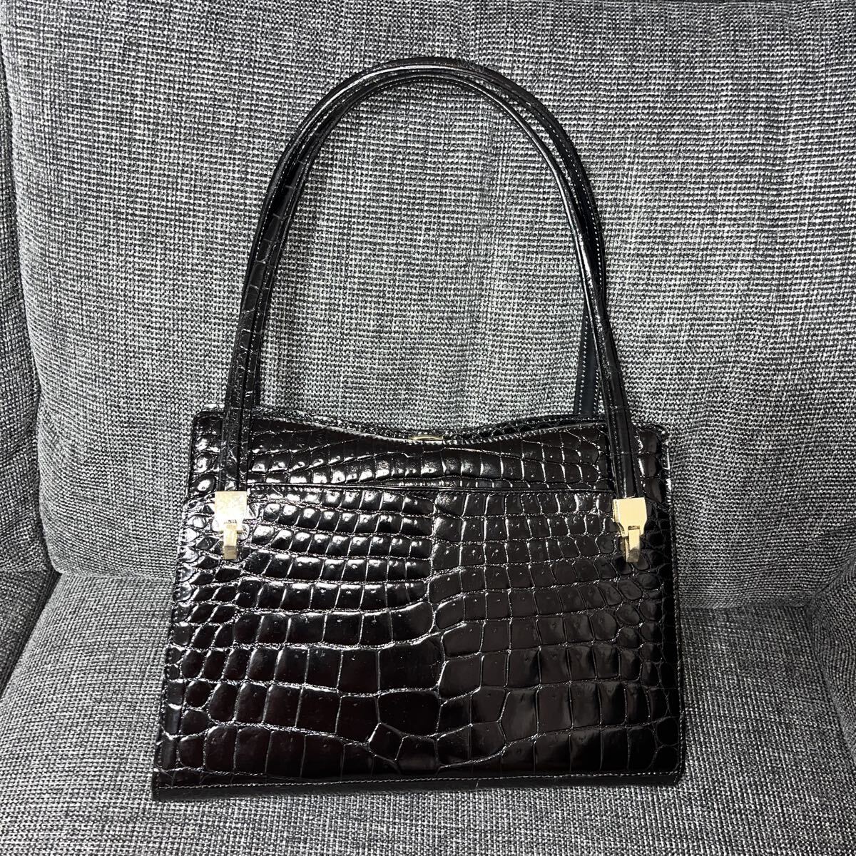 上質なクロコダイルで施されており、シックなブラックカラーとゴールドの金具が高級感を際立たせます。