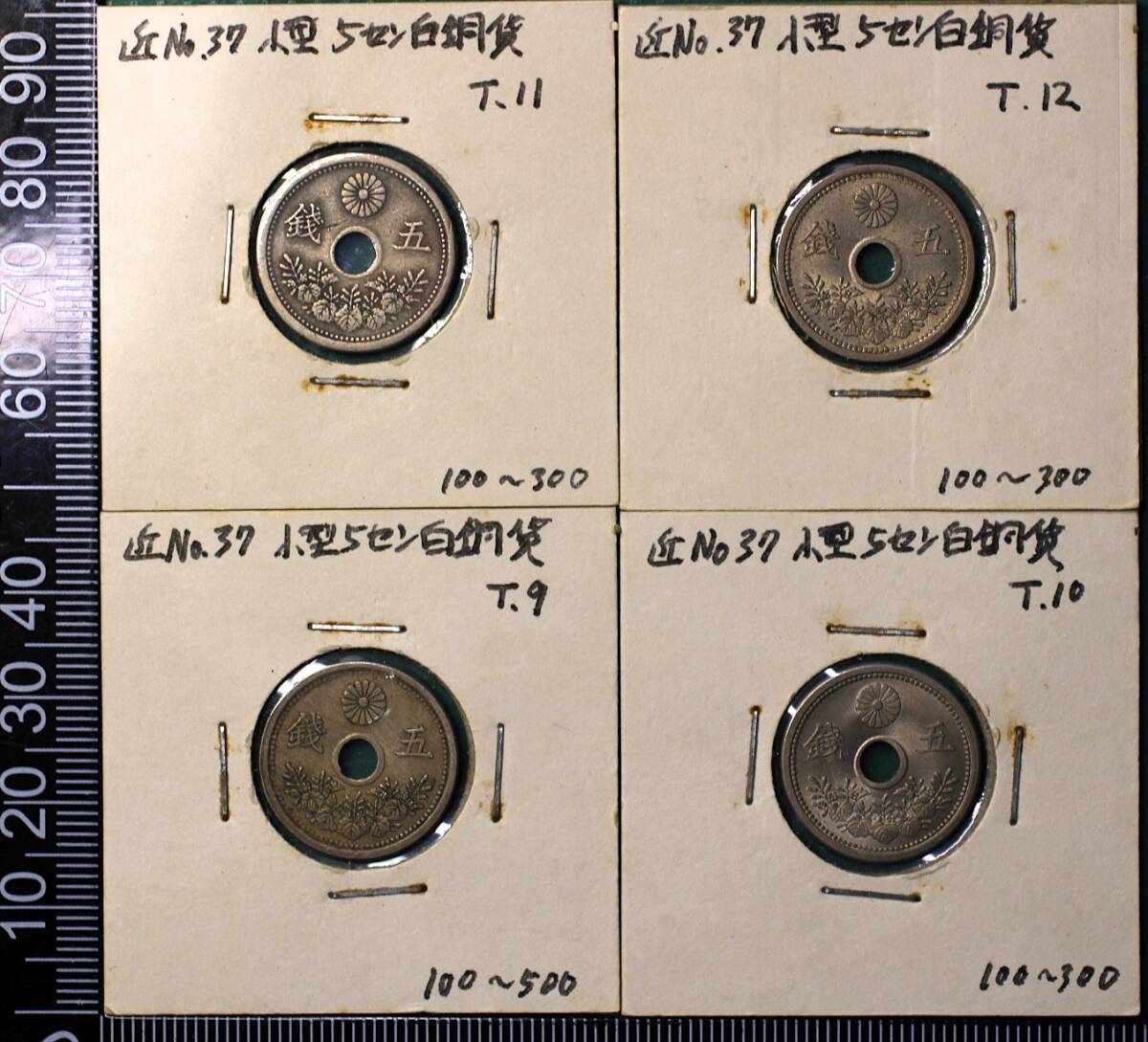 ◆菊紋小型五銭白銅貨◆大正9年・10年・11年12年◆4枚まとめ売り◆古銭◆